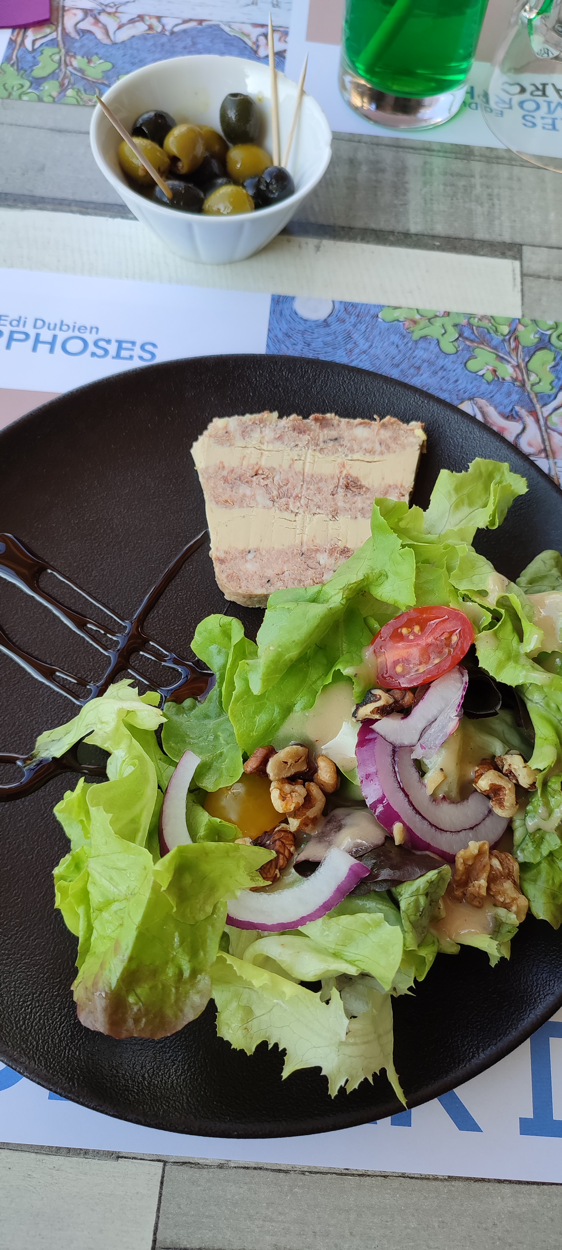 L’attente a duré 1h00 pour passer commande. De plus 3 chenilles cohabitent dans la salade qui devait être cueillie du matin certes mais mal lavée sans doute. Bref le cadre et l’amabilité des serveurs sont quand même présents