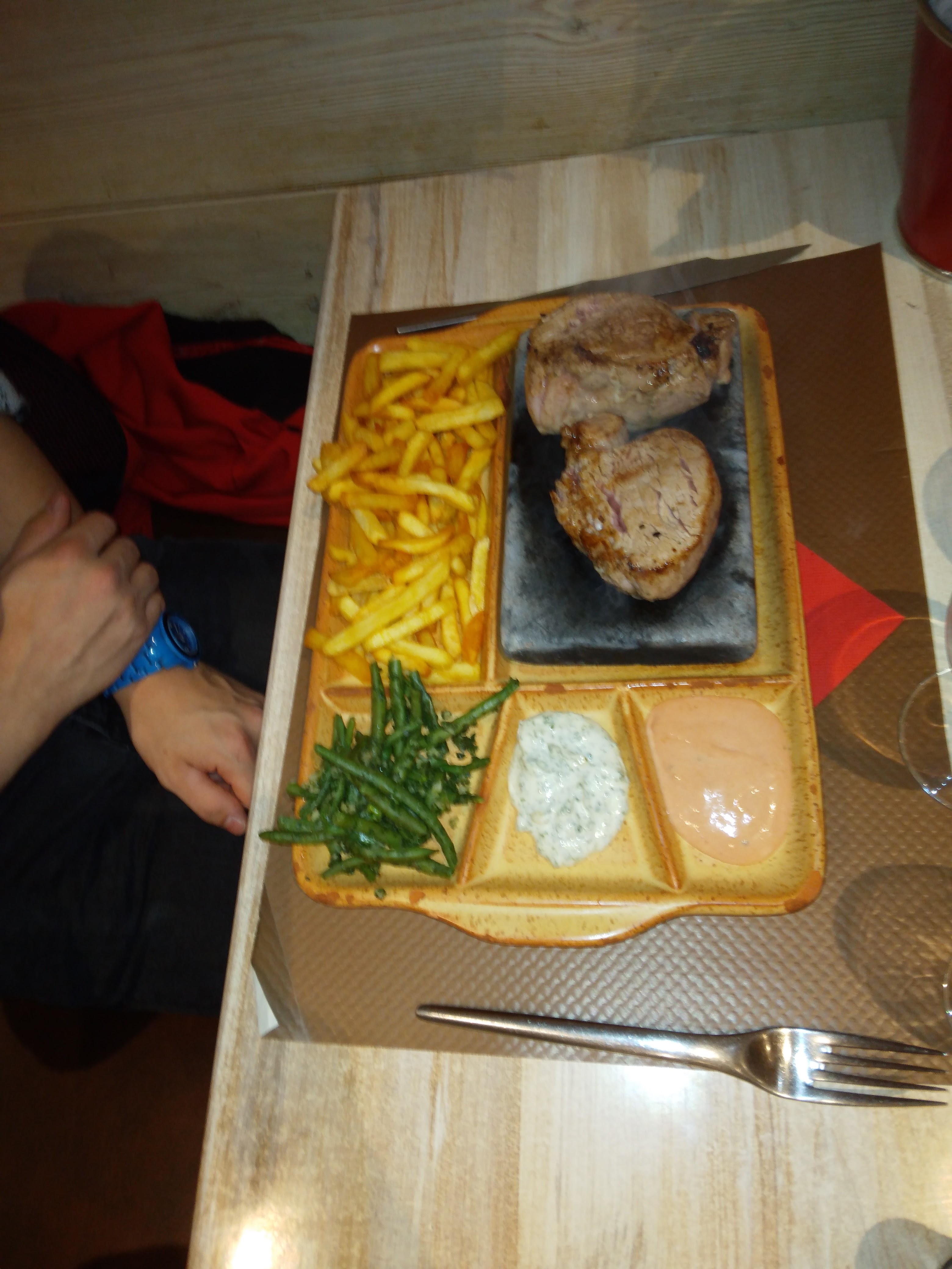 C'est le premier restau dont je sors et j'ai encore faim! Fondue royale, 1 tranche de jambon sec, 3 rondelles de rosettes plus que fines , même pas 1/2 baguettes et un poêlon de fromage. Heureusement qu'il était bon.