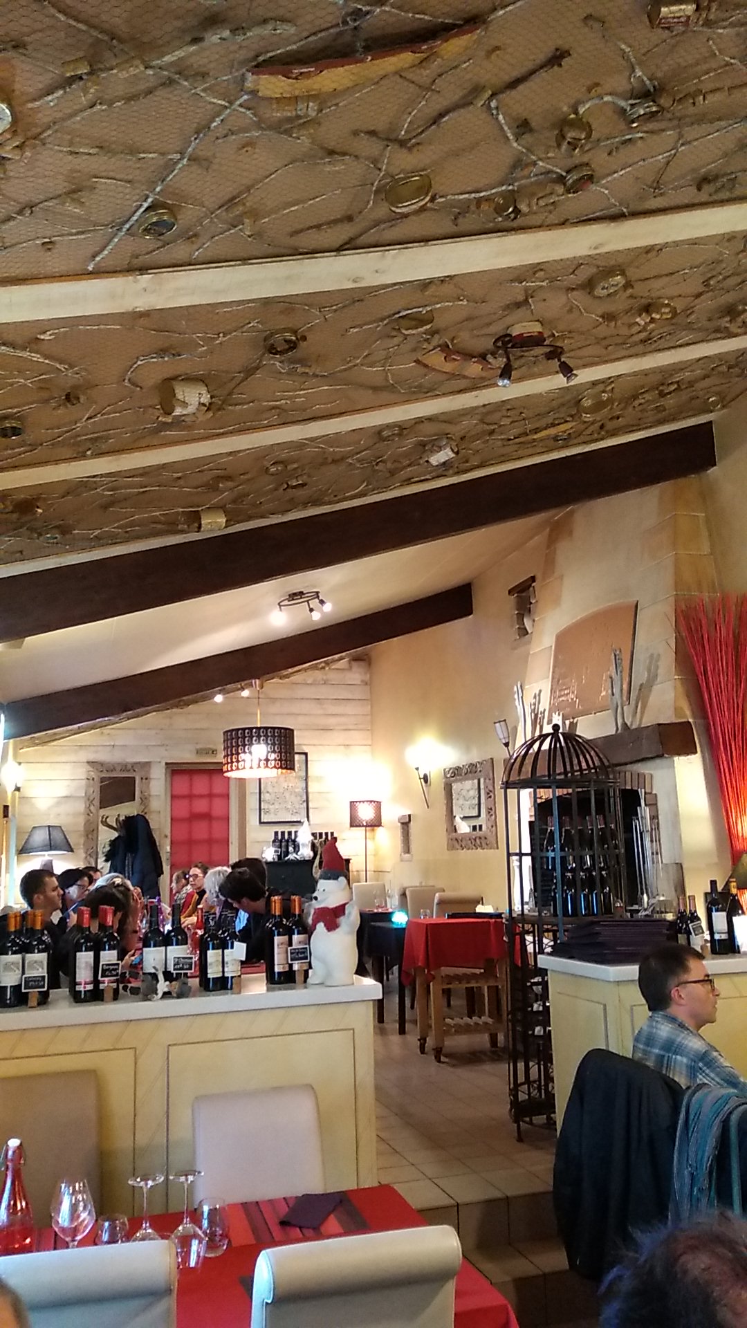 Bon repas mais pas extra, très long, cuisson de la viande en salle mais trop cuite, bon vin, frites maison. Accueil moyen, déco/ambiance moyen.