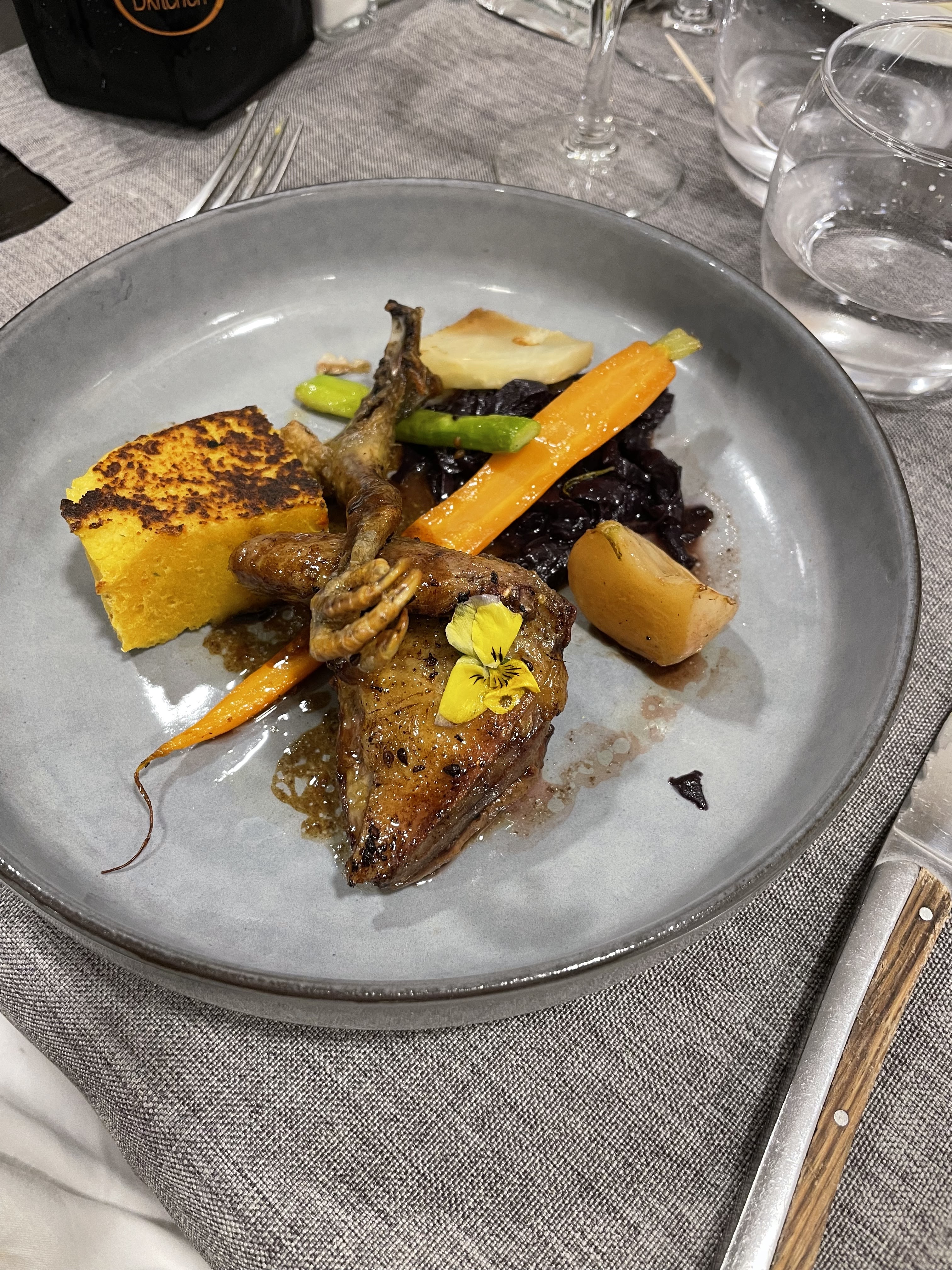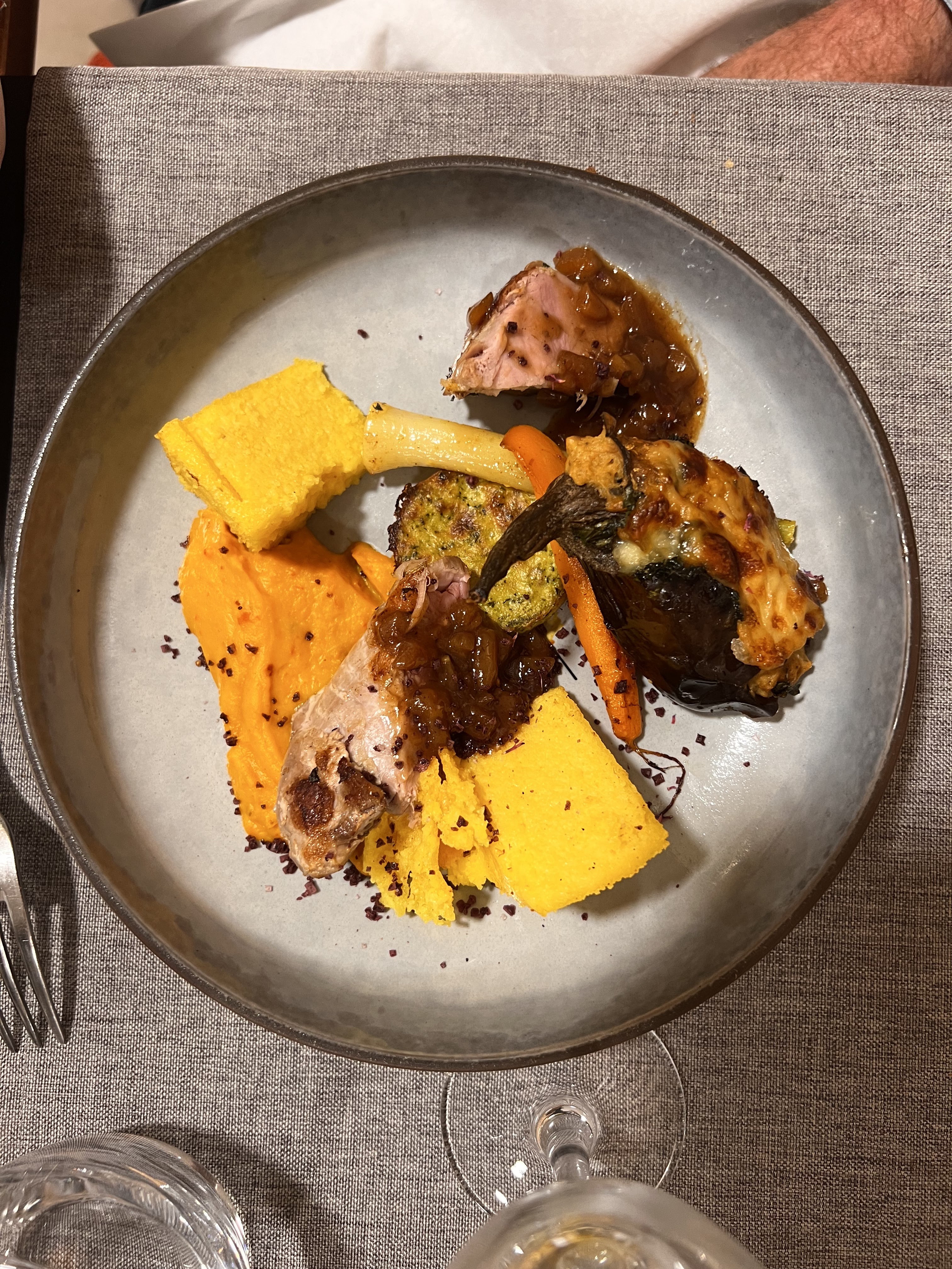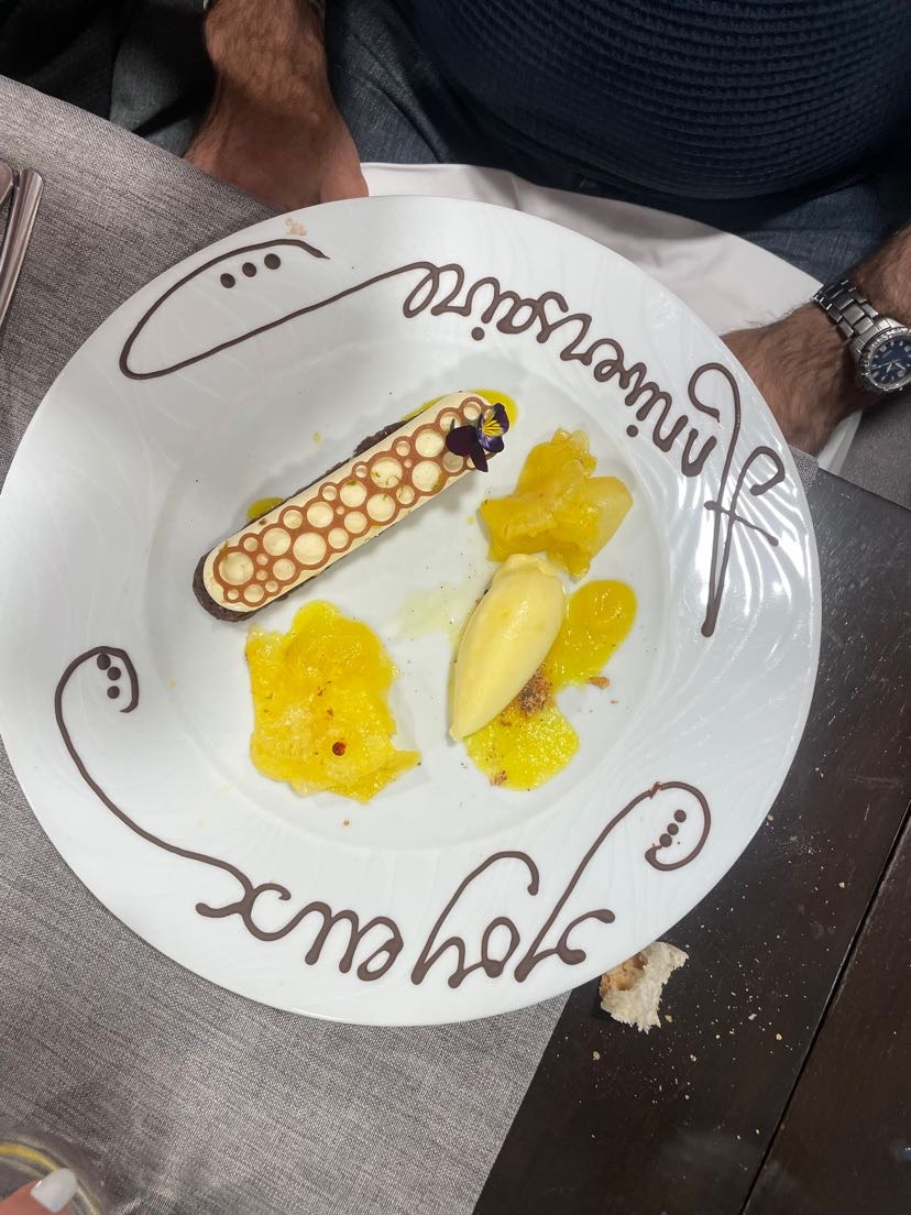 Alors la une belle surprise ! Venu avec des amis qui connaissait le lieu !!! Tadam 🎉 une explosion de saveurs servis dans des assiettes avec un montage de ouf….. pour un prix hallucinant 30€ entrée, plats, fromage et dessert !!! Je vous laisse regarder les photos et le tout avec un service très chaleureux et convivial…. Allez y les yeux fermés