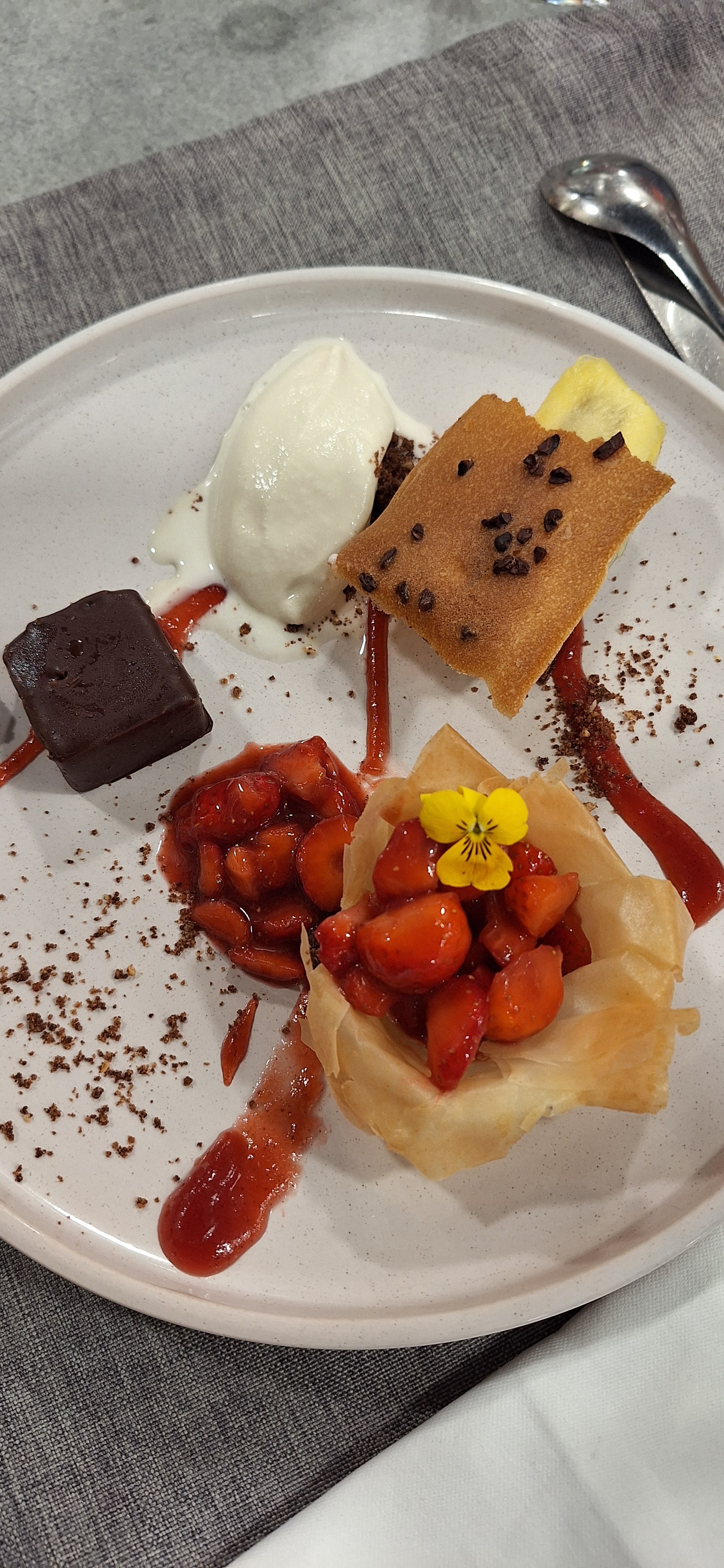 Tout a été parfait, les assiettes trop belles trop bonnes avec couleurs saveurs subtiles et recherchées, service agréable souriant et attentif, et avec un prix plus que raisonnable pour cet ensemble sans reproche. Je recommande grandement. Merci.