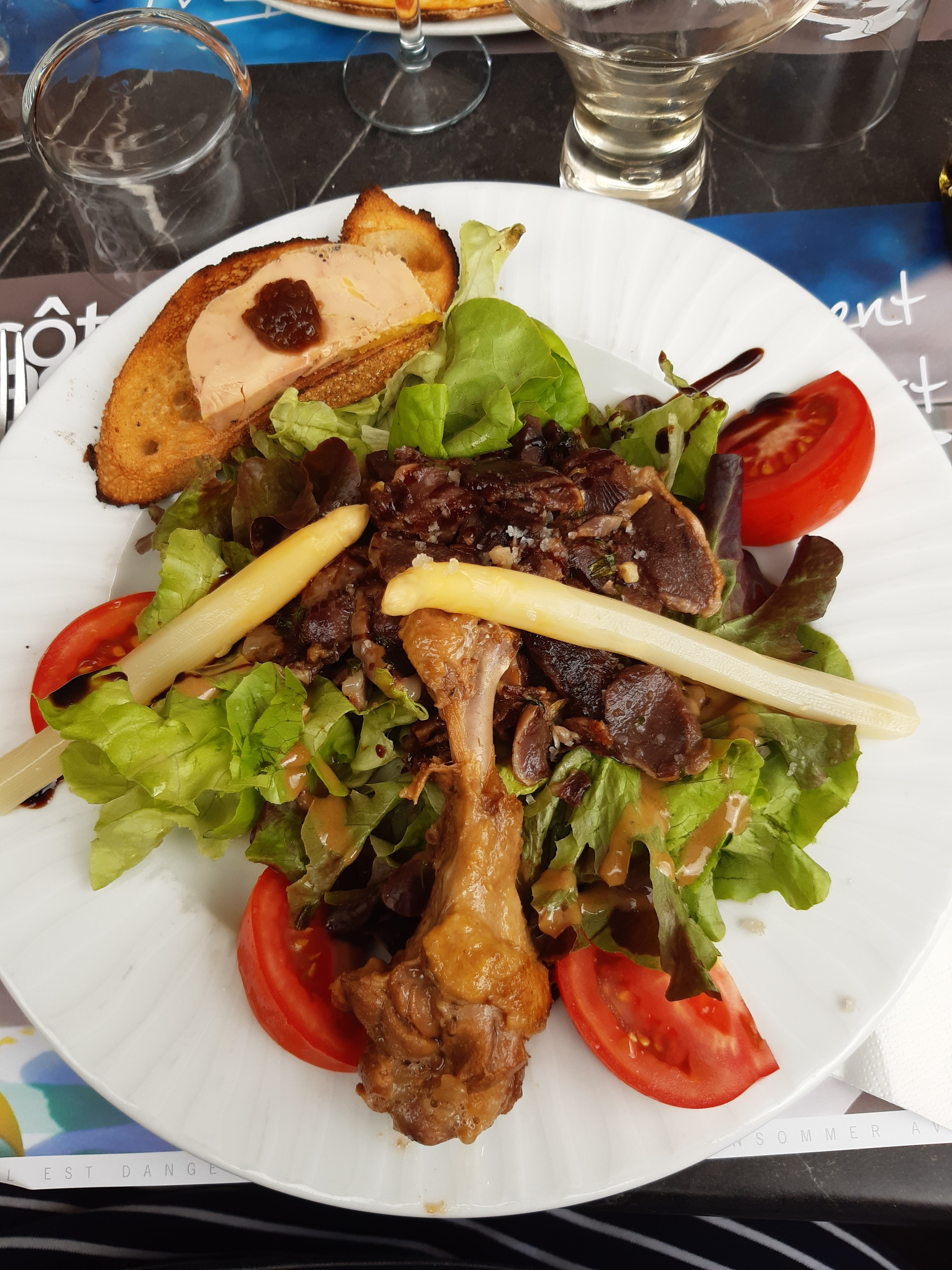De belle assiettes de salades généreuses. Le service est sympathique et la terrasse sous les chênes est superbe. Très bien situé à l'entrée du village fortifié de Larressingle
