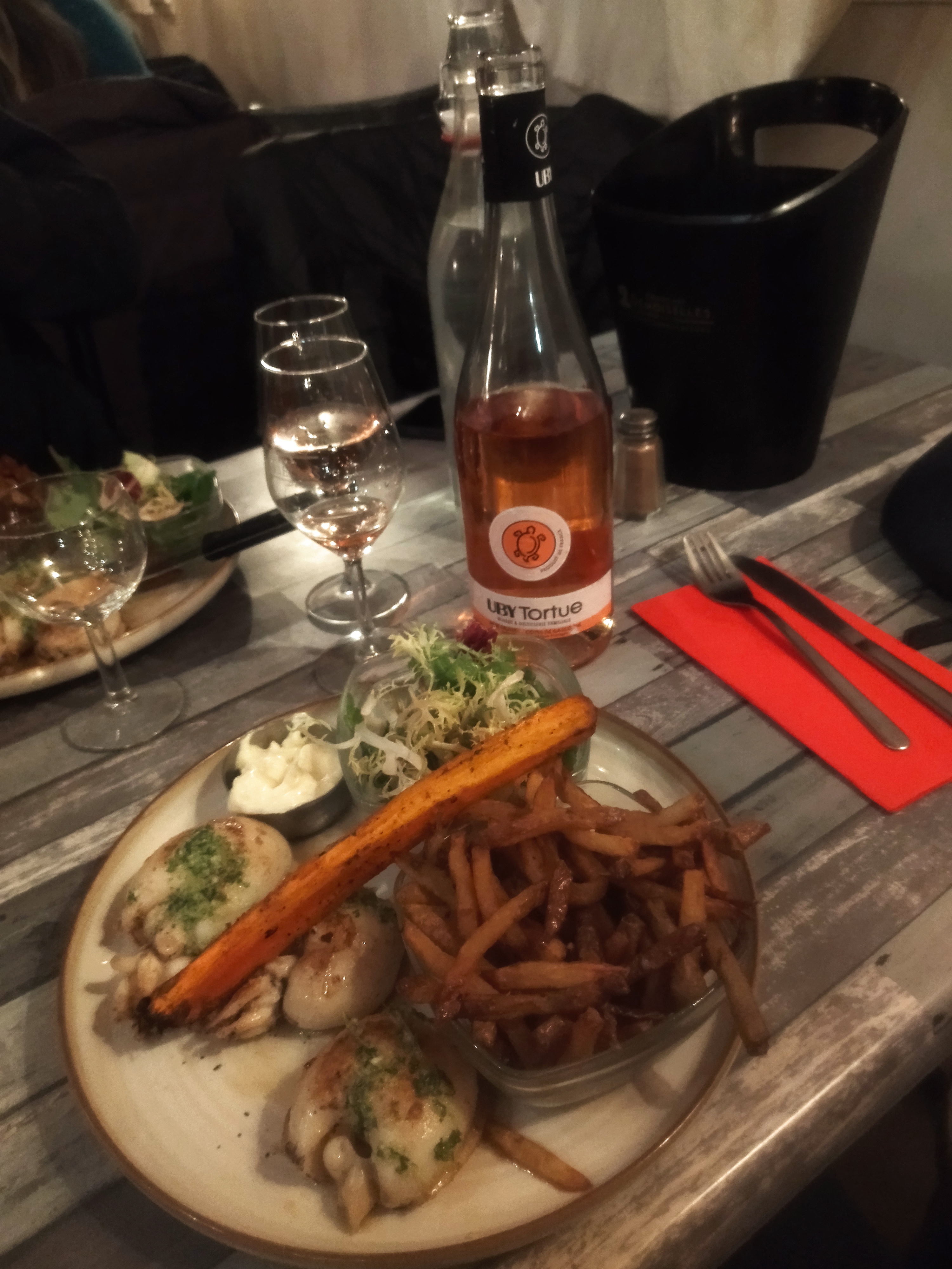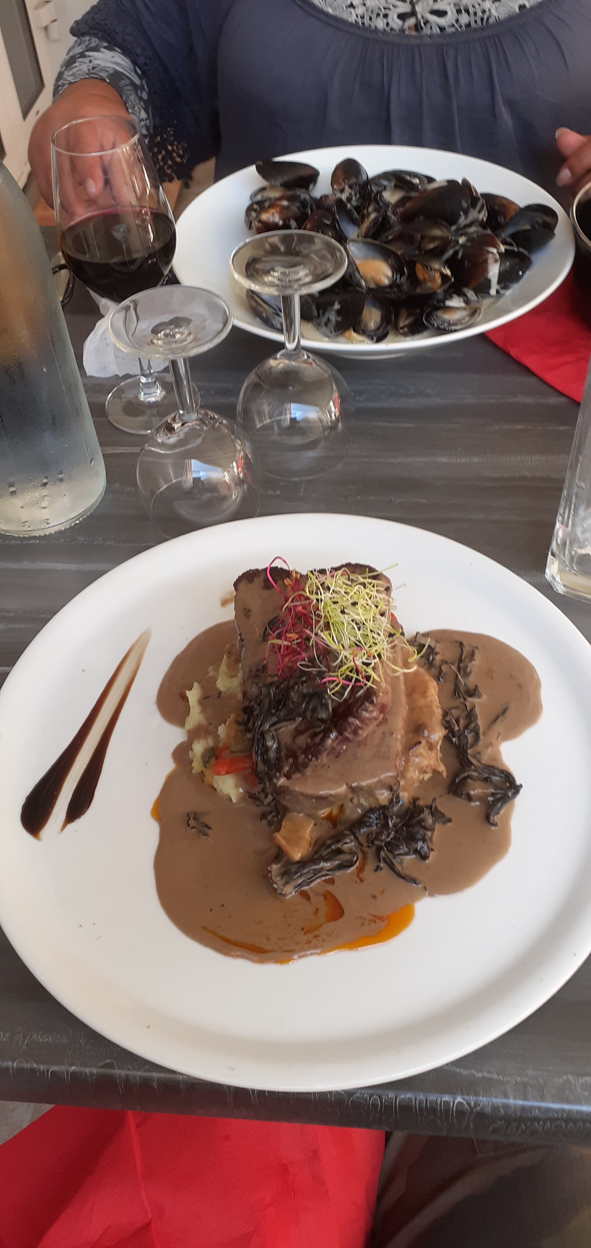 Restaurants au top ambiance au rendez-vous les assiettes bien chargée pour ma part j’ai pris une planche de couteaux et une sèche tout ça été excellent je recommande j’y reviendrais au plus vite 😄