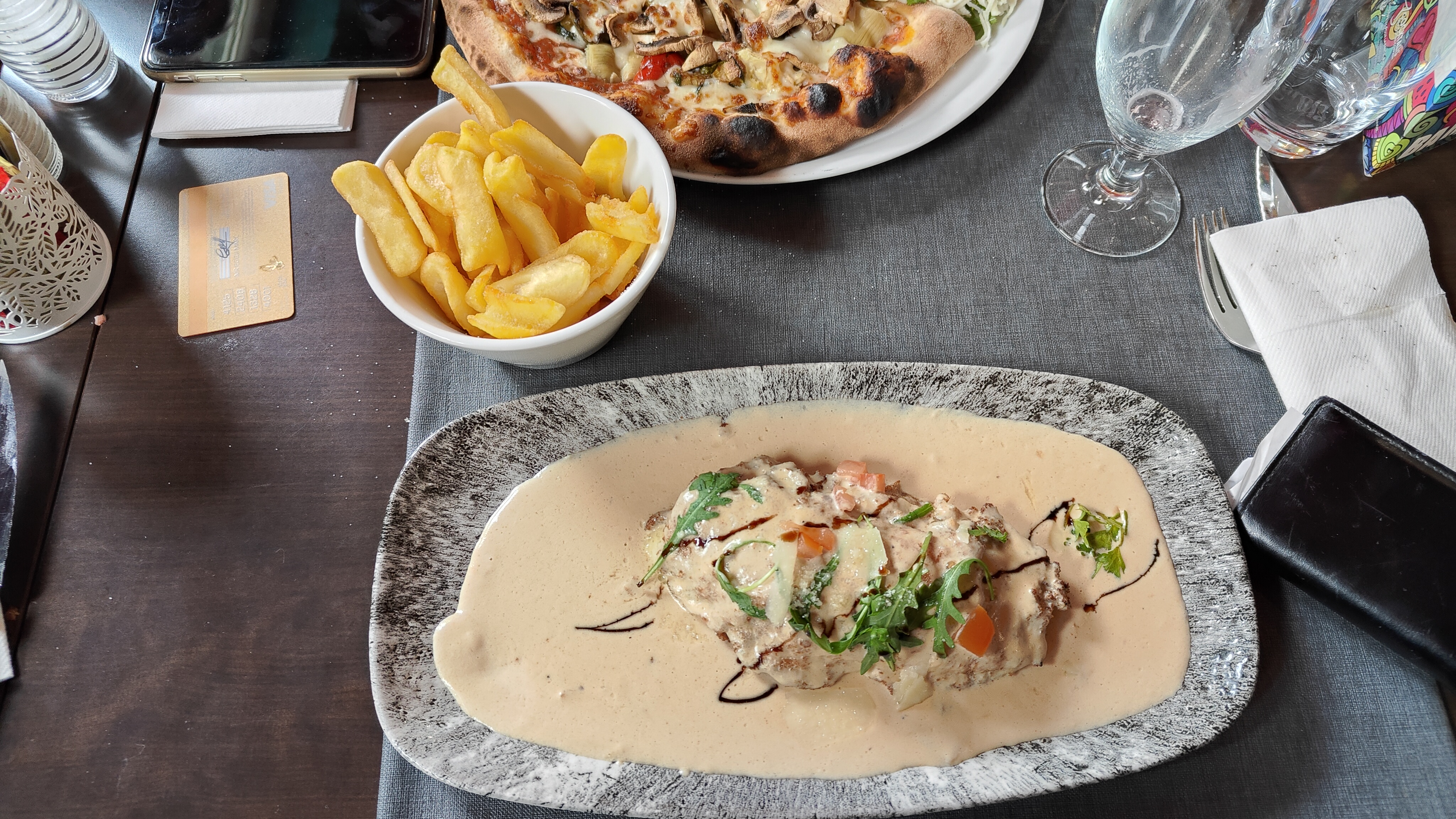 Plusieurs repas mangés sur place et pizza à emporter. Service rapide et assiettes de qualités. Rien à dire très bon restaurant, très bon rapport qualité prix. Je recommande 😉.