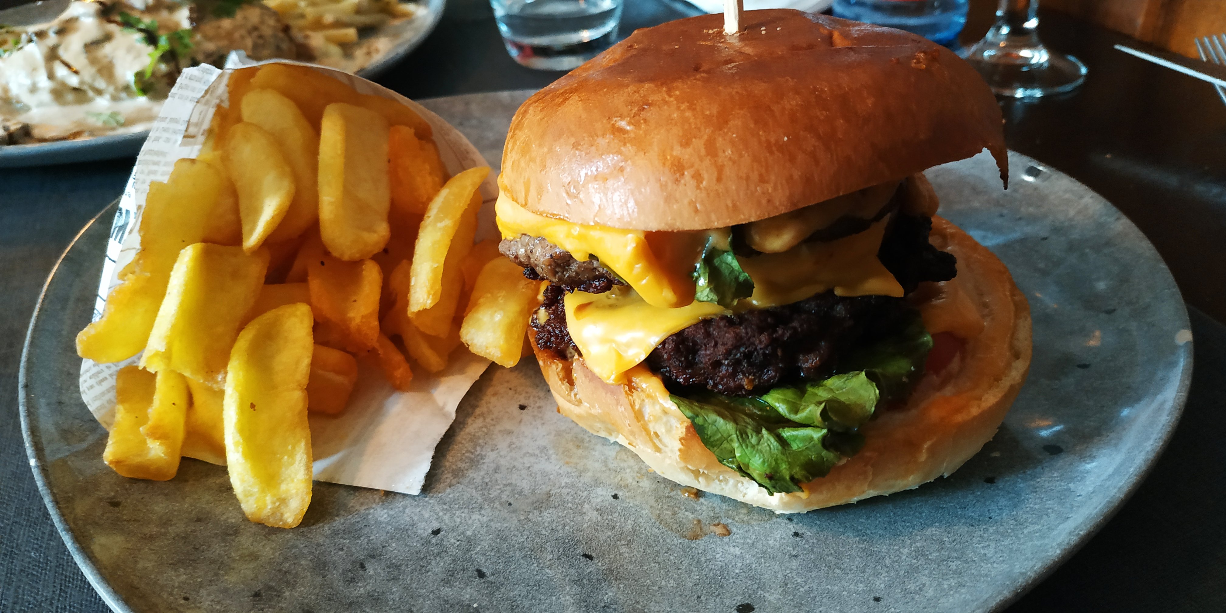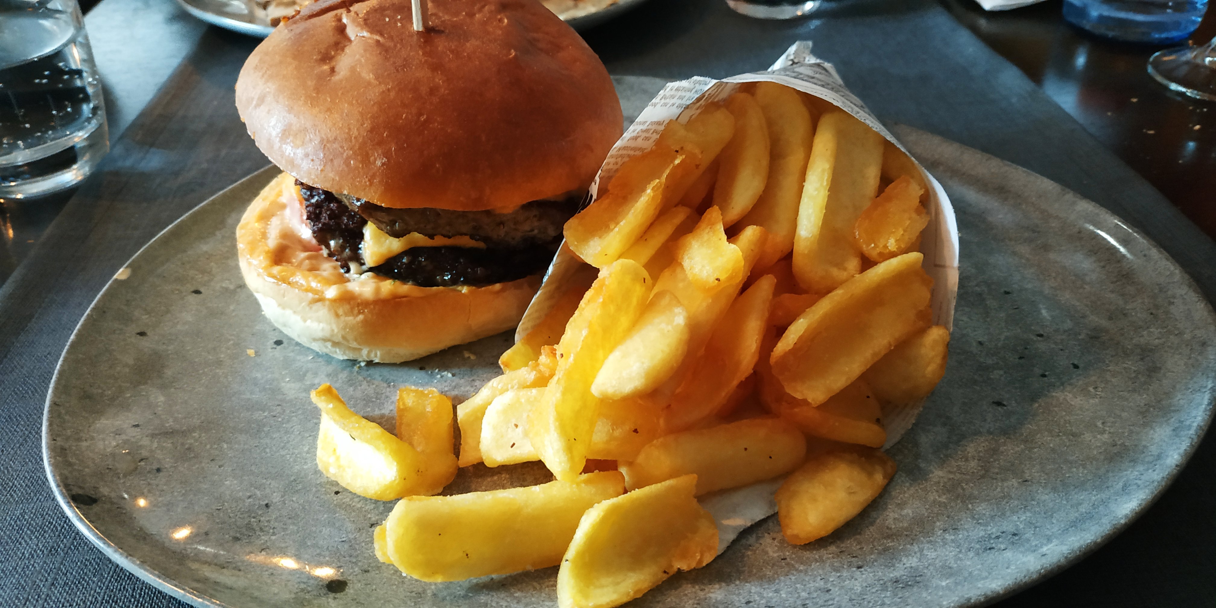 Très sympathique. De bonnes proportions, a part que j'aurais du demandé à se qu'il n'y ai pas de pesto sur mes pâtes. En photo : cordons bleus crème champignon avec une demande de pâte Un ''big burger'' accompagné de frites Restaurant très accueillant et très bien agencé, la terrasse est également très sympa. Je recommande, entre ami, en famille ou même avec des pros ou entreprise. C'est un restaurant qui semble très haut de gamme mais les prix restes accessible. Tarte flambée très bonne aussi. 😊😊😊