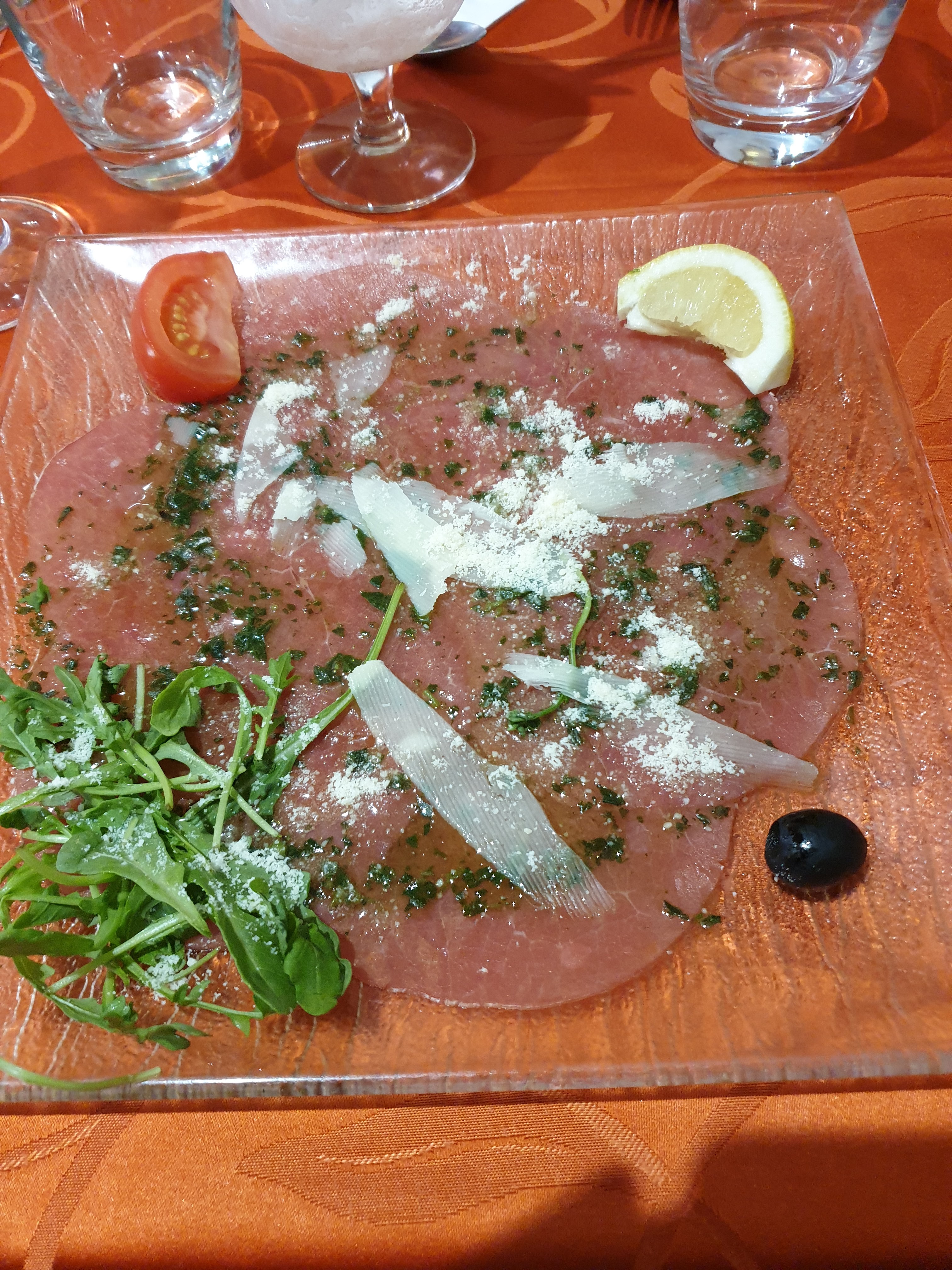 Beaucoup d attentes pas assez de luminosité sur la terrasse et carpachio à volonté faudrait pensé a le remettre aux frais entre les assiettes