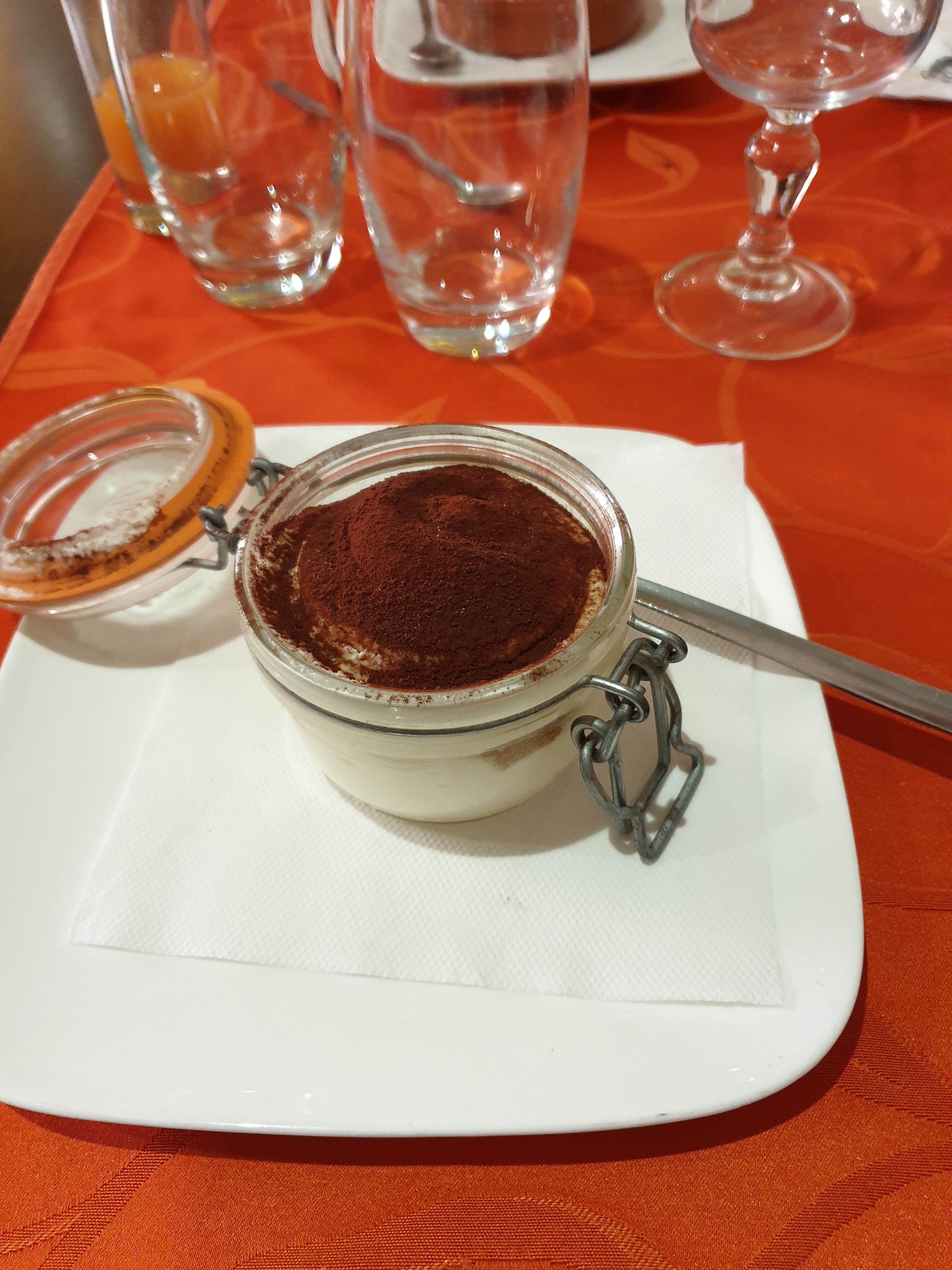 Malgré un triple service ce midi, et certainement un peu de fatigue, l’équipe est très sympathique et on y mange très bien. Des pattes à la bolognaise, Carbonara et gambas pour nous ce soir et les dessert. Victime de leur succès plus de pizza et certains dessert mais nous sommes arrivés tardivement 21h. Merci encore pour l’accueil et la gentillesse.