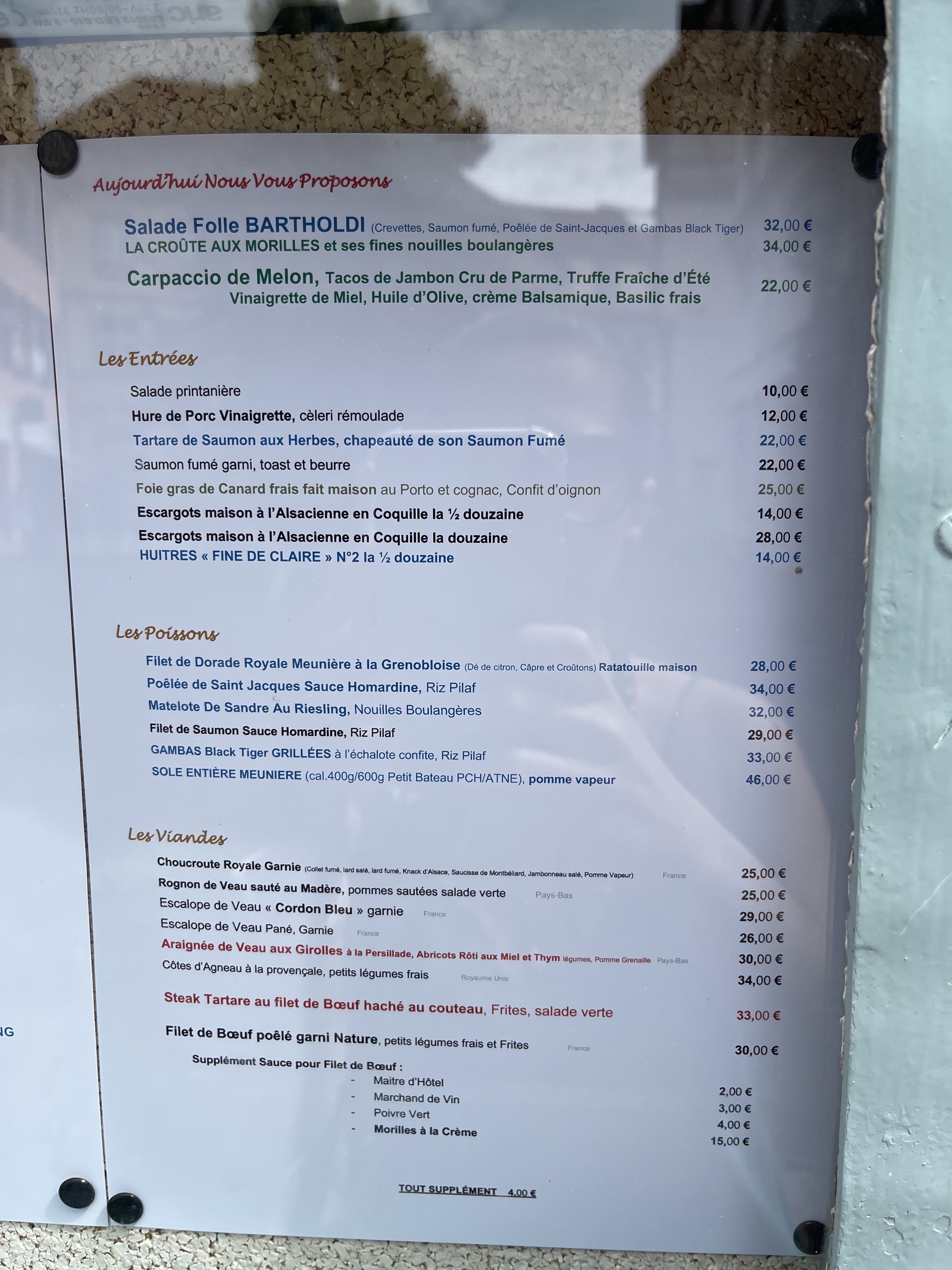 Nous nous sommes régalés avec le menu Bartholdi bien copieux et raffiné tant par le dressage des assiettes que par le gourmet des ingrédients...une note tte particulière pour l araignée de veau et sa sauce...de bon conseil pour le choix du vin par la patronne...nous étions au calme et avons passé une excellente soirée.. de belles fêtes à vous et surtout si j'ai cru comprendre : une excellente retraite bien méritée !!🥳🎉🎉