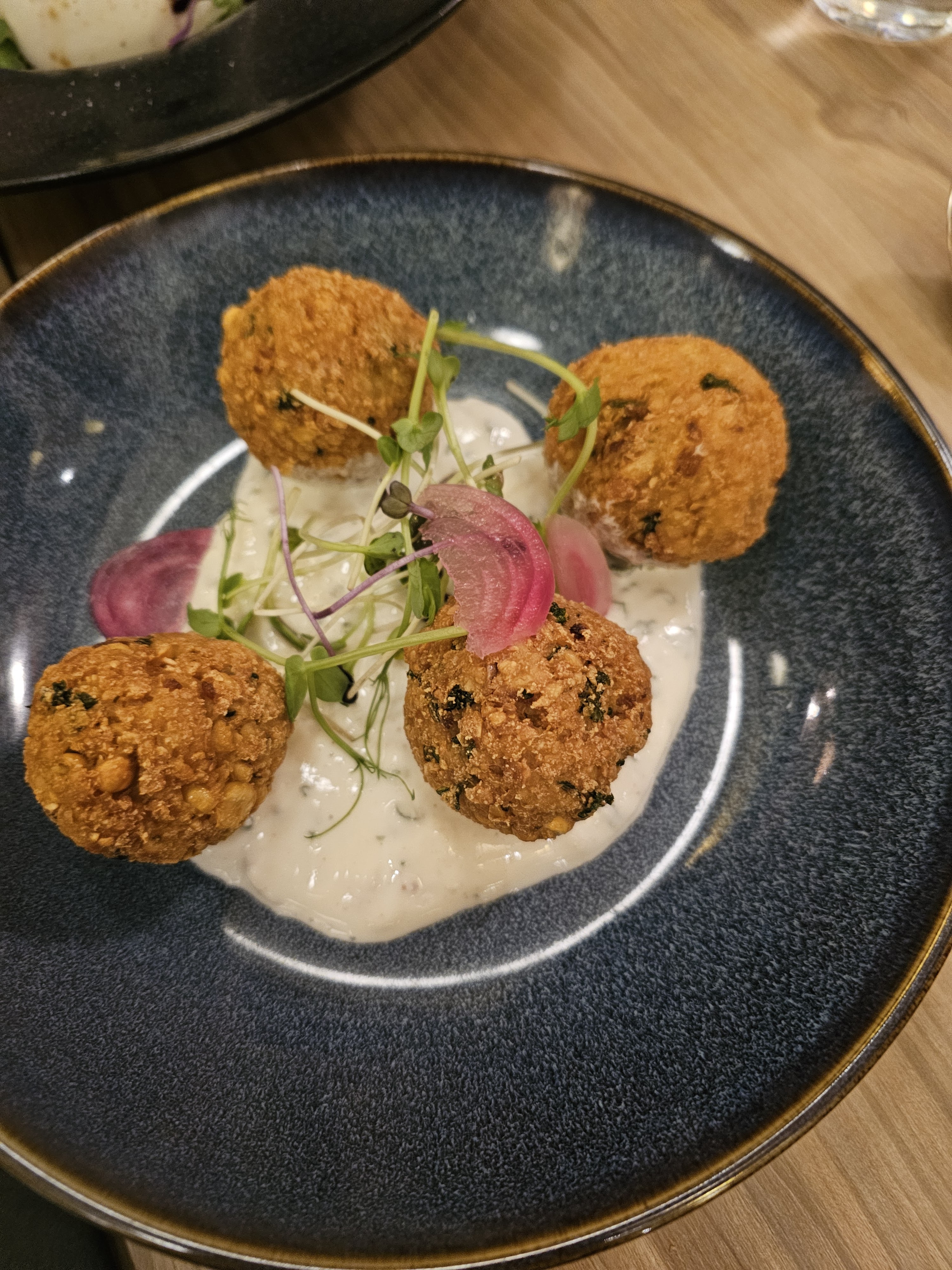 Cadre chaleureux mais manque d’ambition dans l’assiette du début à la fin. Falafels secs et sans goût, brochette satay sans avis cher. Onglet mal saisi qui nage dans une purée trop liquide et fade. Cocotte de joue de porc gras, fade, manque de sauve, pommes de terre grenailles avec des yeux et sèches. Le dessert dacquoise mangue sauve un peu le reste. Grosse déception.