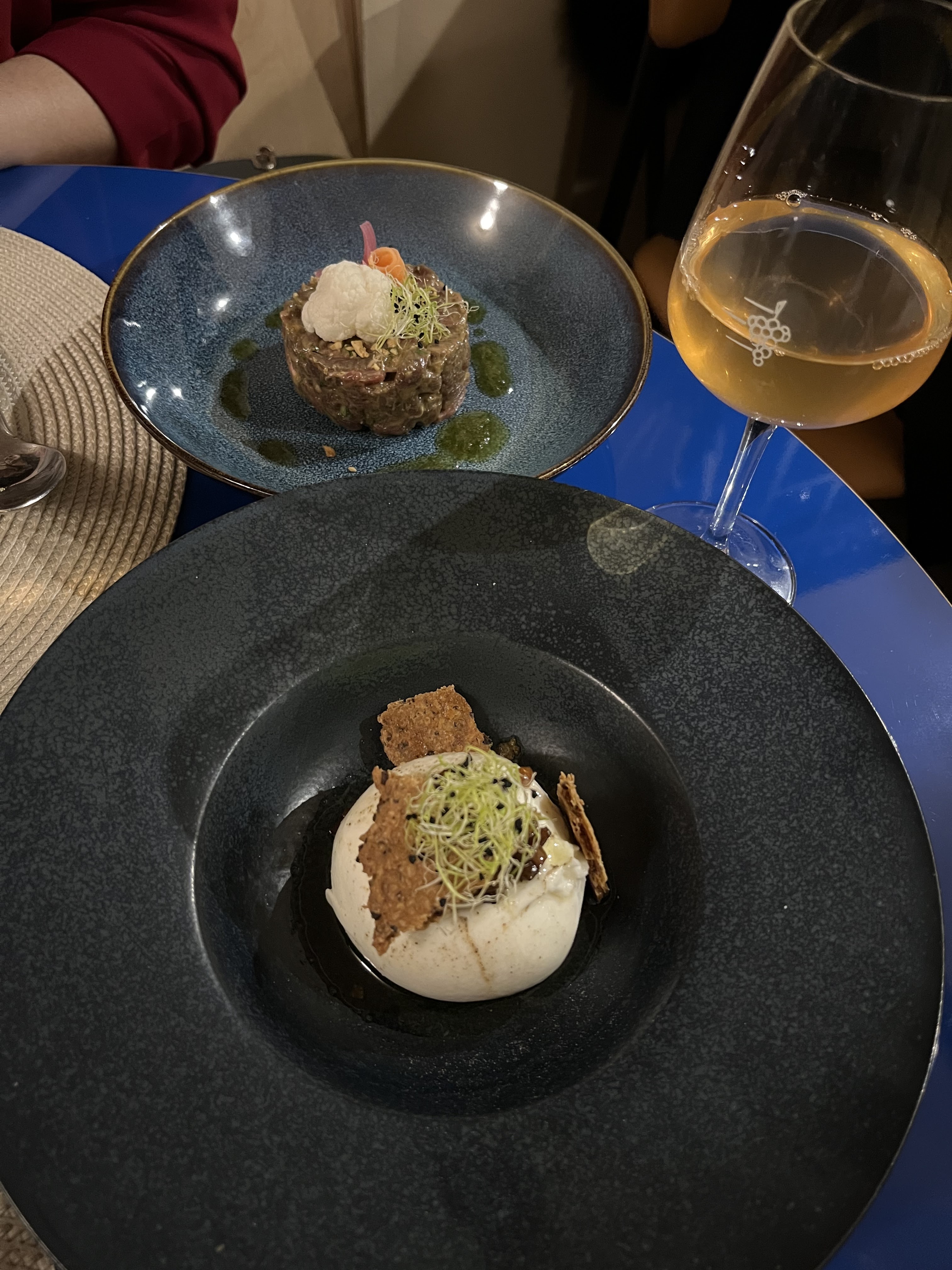 Très belle découverte !! Tout y est pour passer un agréable moment : Acceuil chaleureux, dans un joli cadre, Une petite carte avec des propositions originales et qui donnent envie 😍, De bons conseils pour les vins à associer avec les mets choisis. Bref, on ressent dans les plats l'art et l'amour de la cuisine (bien faite !) 😋 Merci encore, on reviendra sans aucun doute !