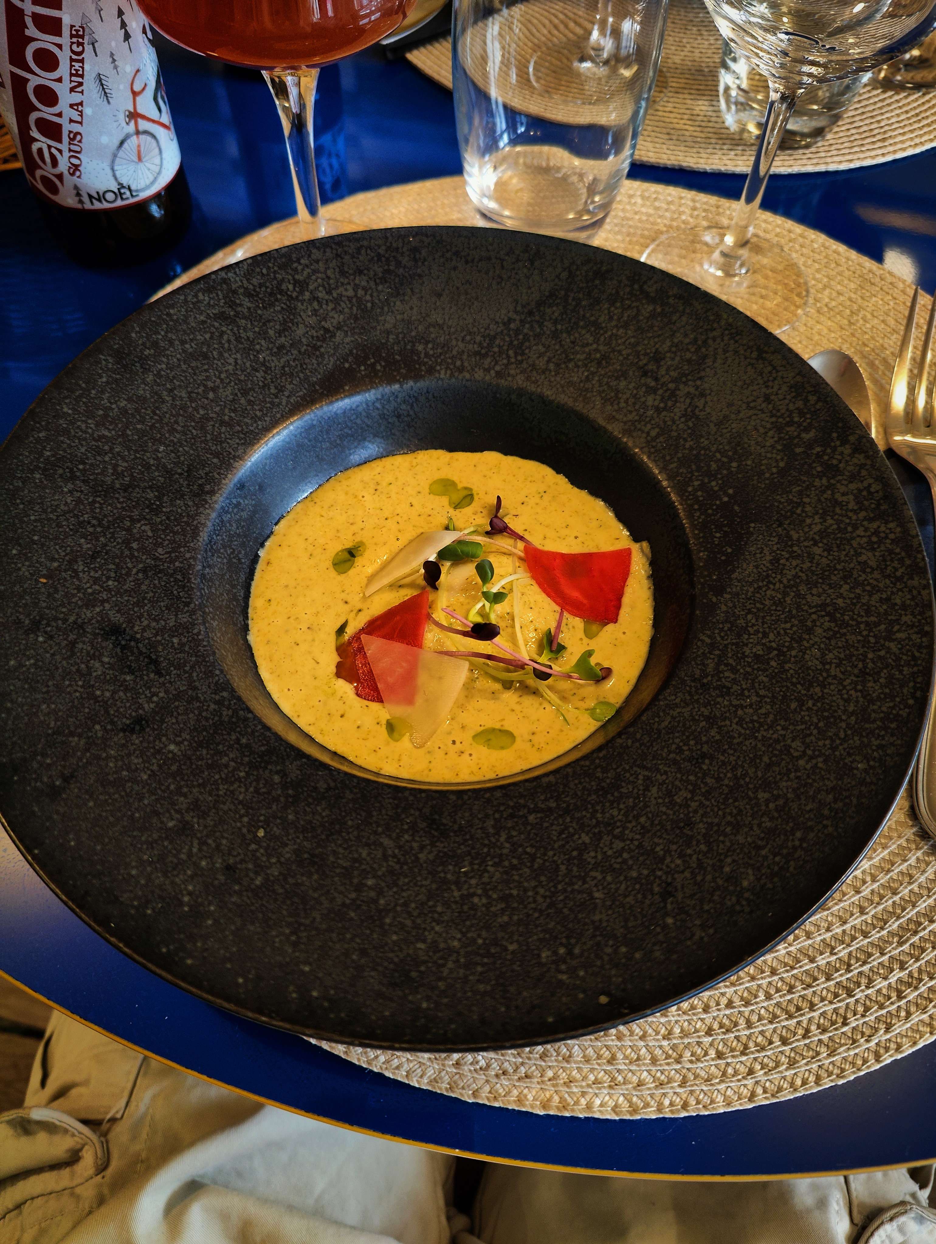 Très belle découverte et expérience. On a passé une très belle soirée ou le dîner devient presque un jeu. L’endroit est apaisant et le service très agréable. Vous pouvez y aller les yeux fermés ! Mathilde & Arnaud, table 15.