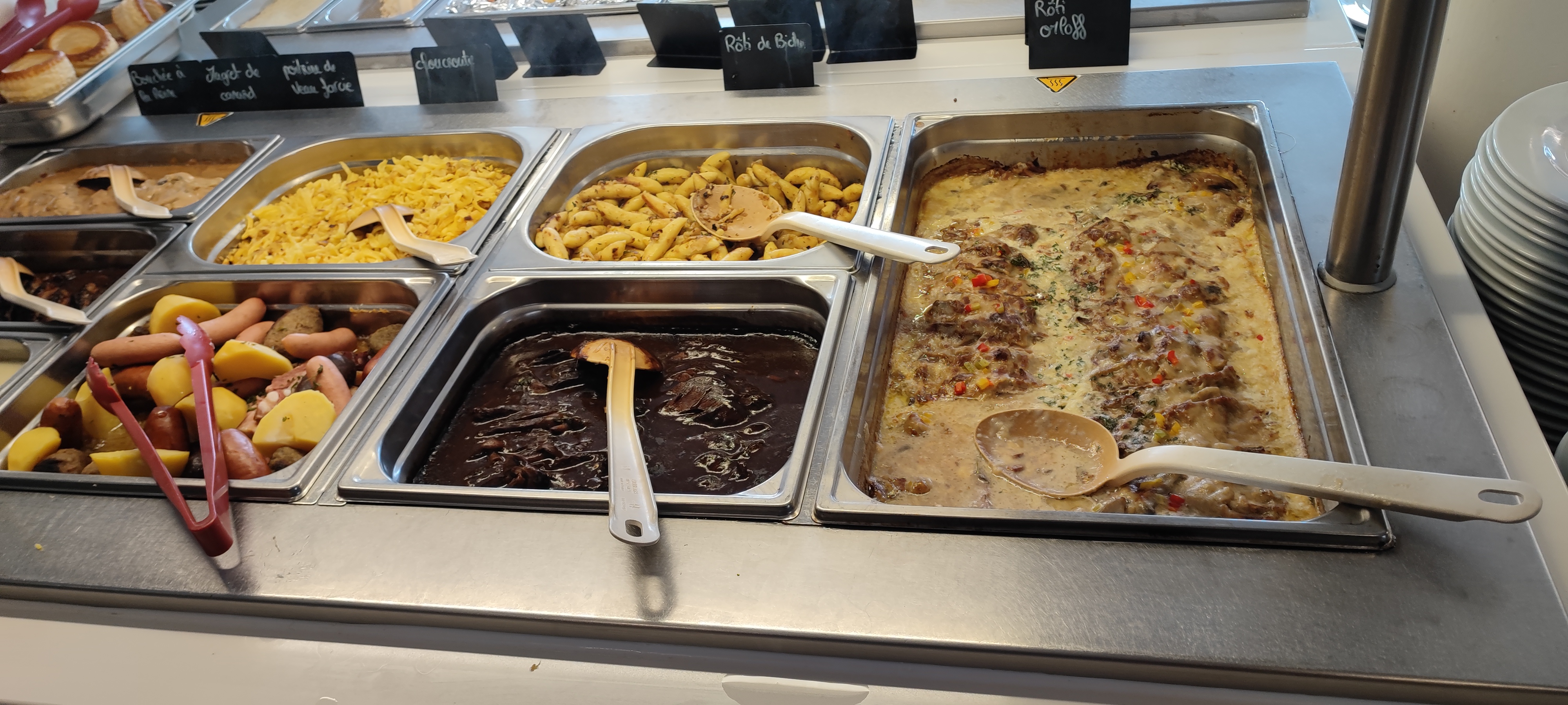 Deux restos en un. vous aimez le self, Sylvie vous accueille avec une formule tout compris....et un étage plus haut, retrouvez Gabriel qui se fait grand plaisir à vous servir efficacement les plats préparés par Benoît dans une grande salle... Attention, ce n'est pas pour les petits joueurs, les portions sont impressionnantes...je me régale à chaque fois.