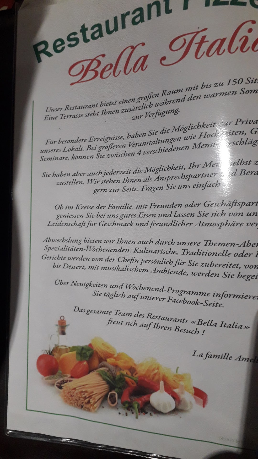 Après m'être arrêté au garage Peugeot Schneider pour une vidange, je me suis mis à la recherche d'un restaurant sympathique dans les environs et j'ai découvert le restaurant la belle Italia qui m' à reçu chaleureusement comme sait si bien faire là tradition Italienne. Convivialité ,simplicité, gentillesse et professionnalisme sont au rendez-vous pour vous faire passer un agréable moment en leur compagnie . BRAVO la Bella Italia !!!!!!