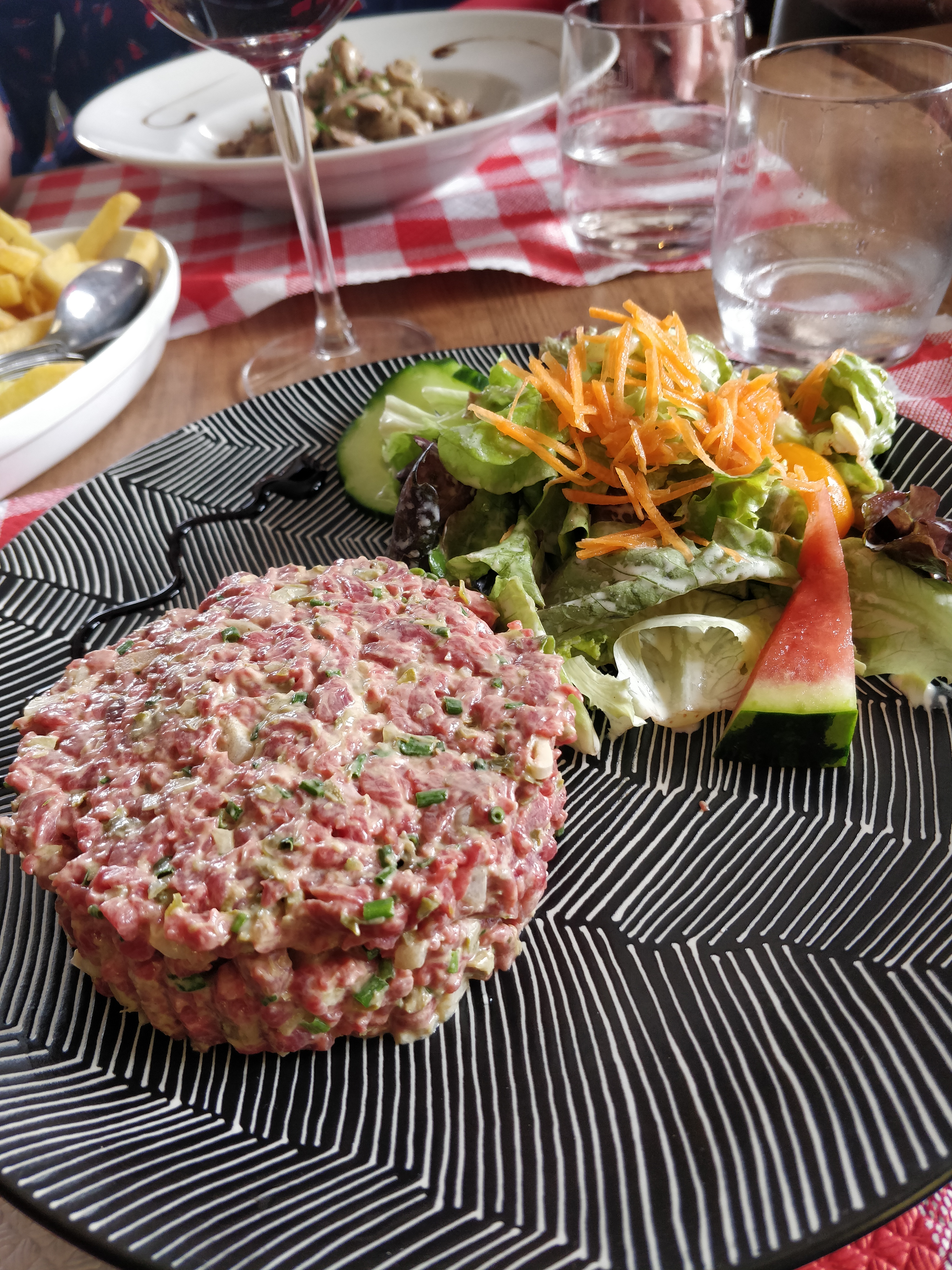 Superbe terrasse avec vue sur la forêt noire. Cuisine de qualité et servie en quantité suffisante. Malheureusement le service est à revoir. (Plat principal servi avant l'entrée et erreur de garniture)