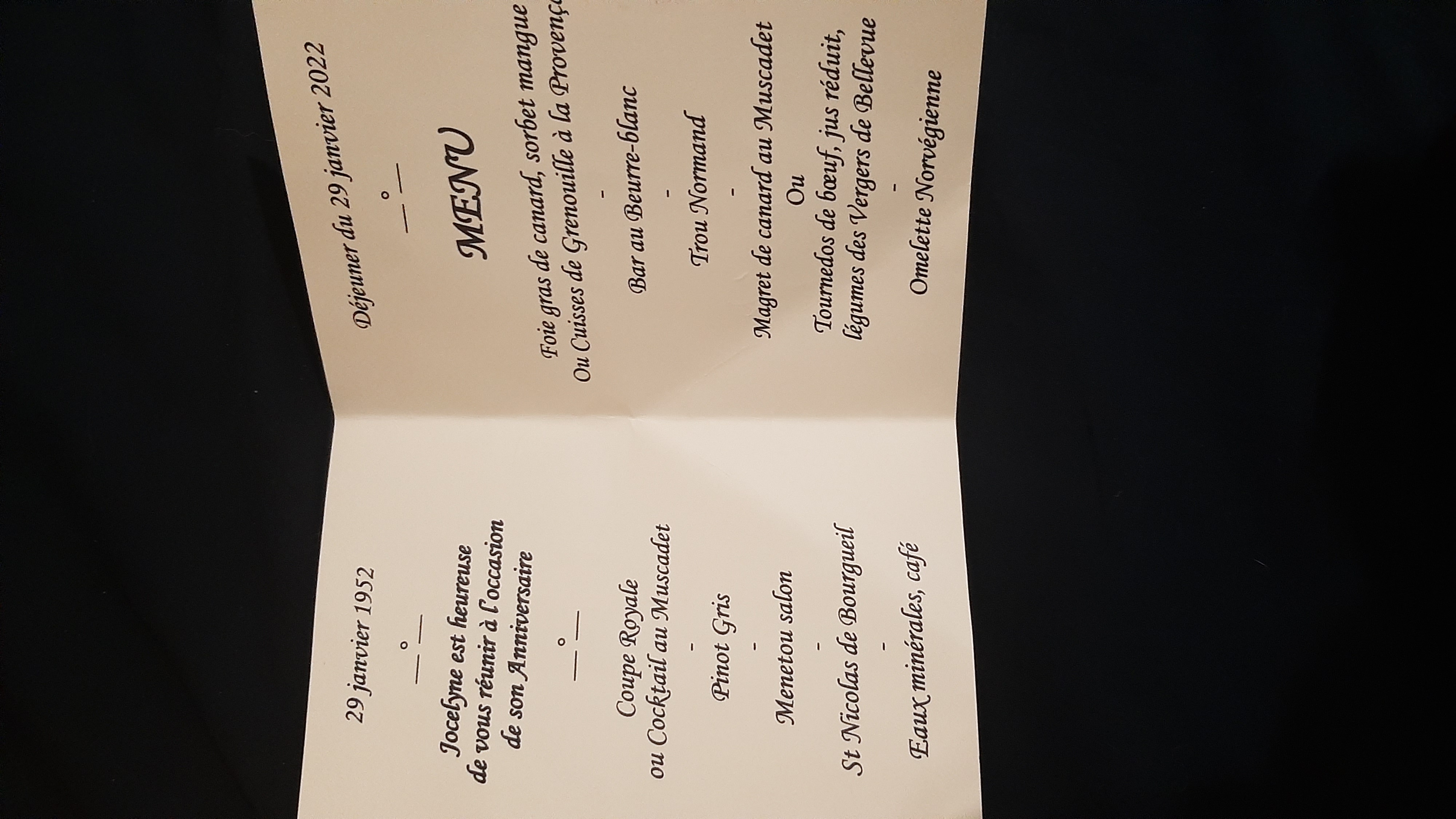 Repas en famille où nous avons pris beaucoup de plaisir. Nous nous sommes régalés et avons été bien accueillis dans un cadre exceptionnel. Merci.