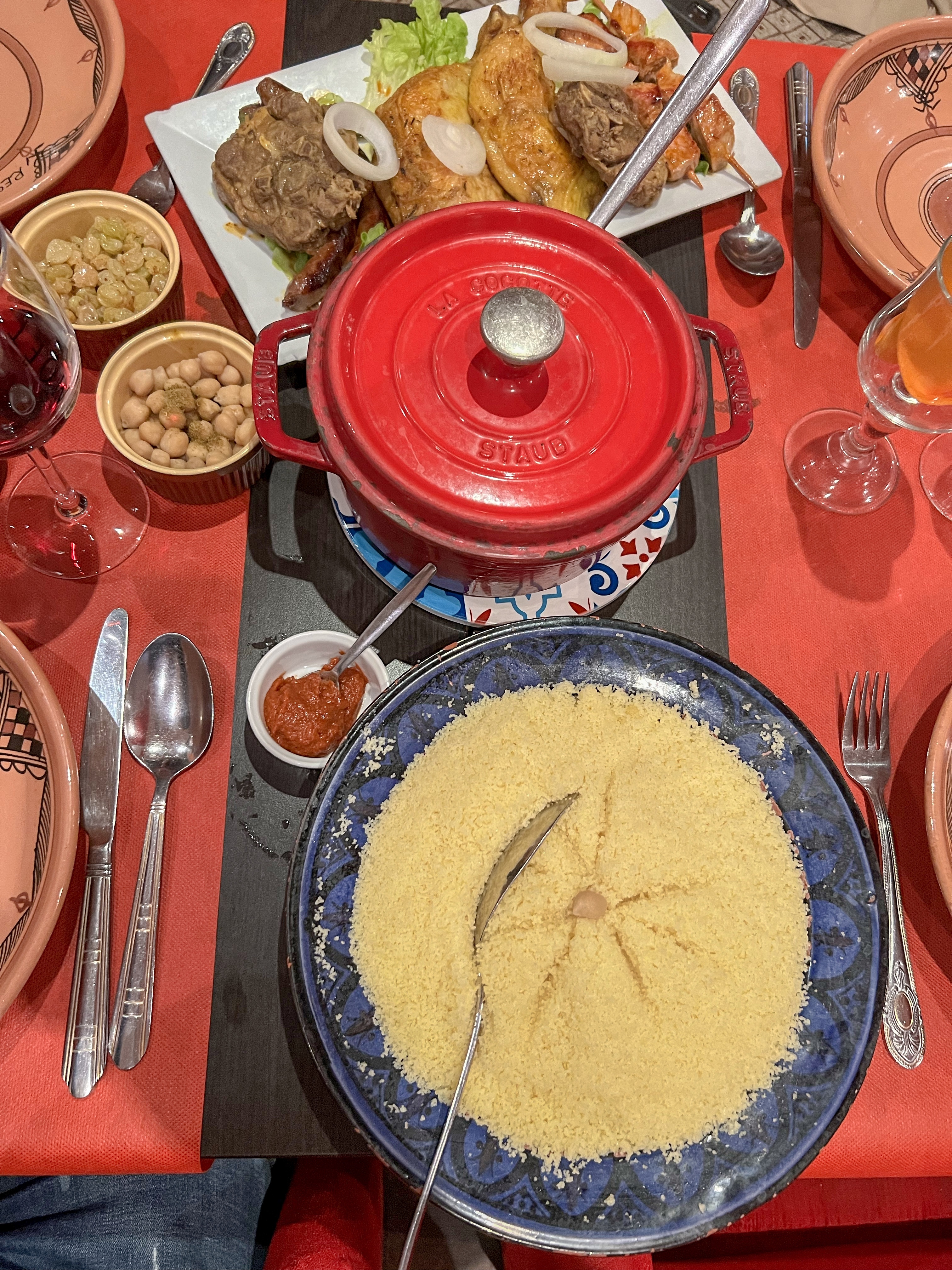 Un couscous royal...vraiment royal. Tajines poulet génial.