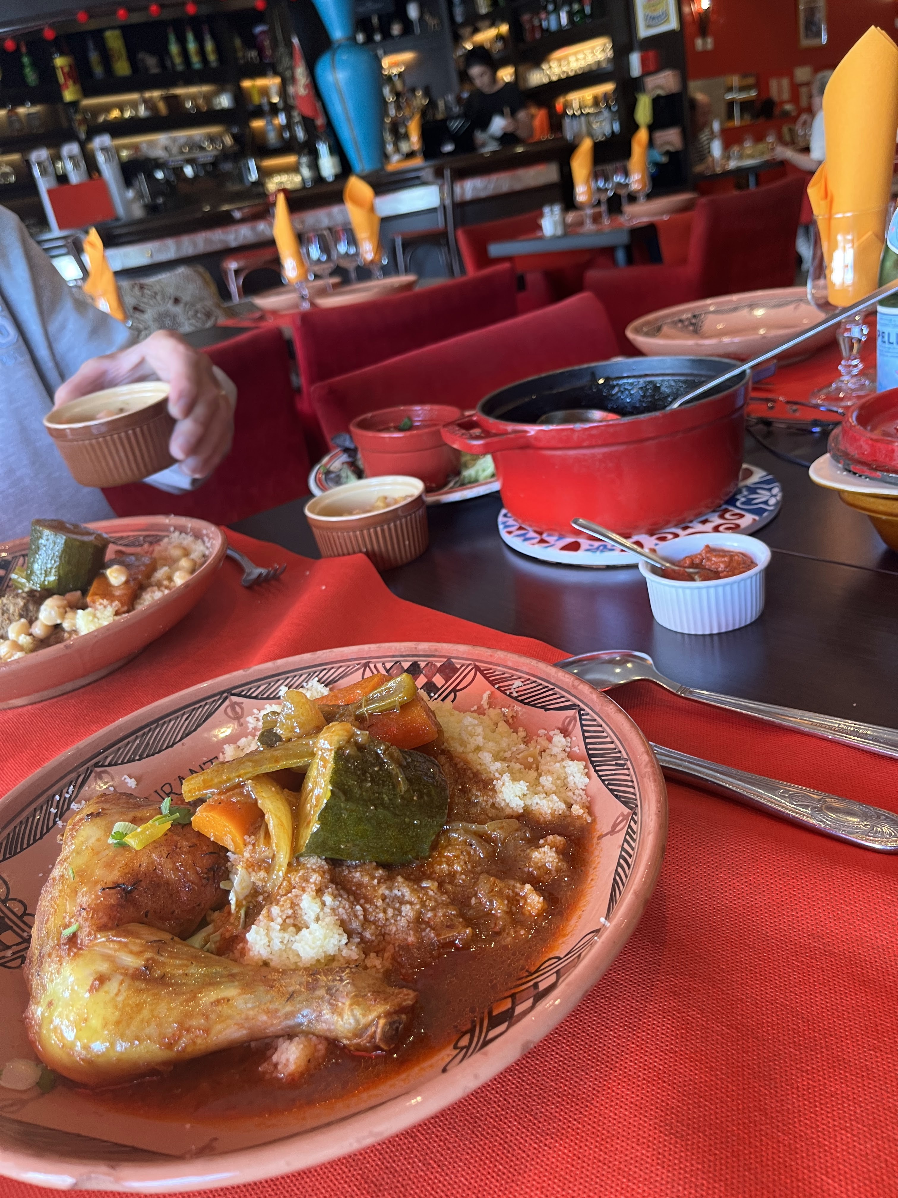 Ambiance à la marocaine, Plat généreux pour le couscous berbère, Tagine agneau avec sauce sucrée. Plat pour enfants disponible aux choix, Viande halal disponible aussi.