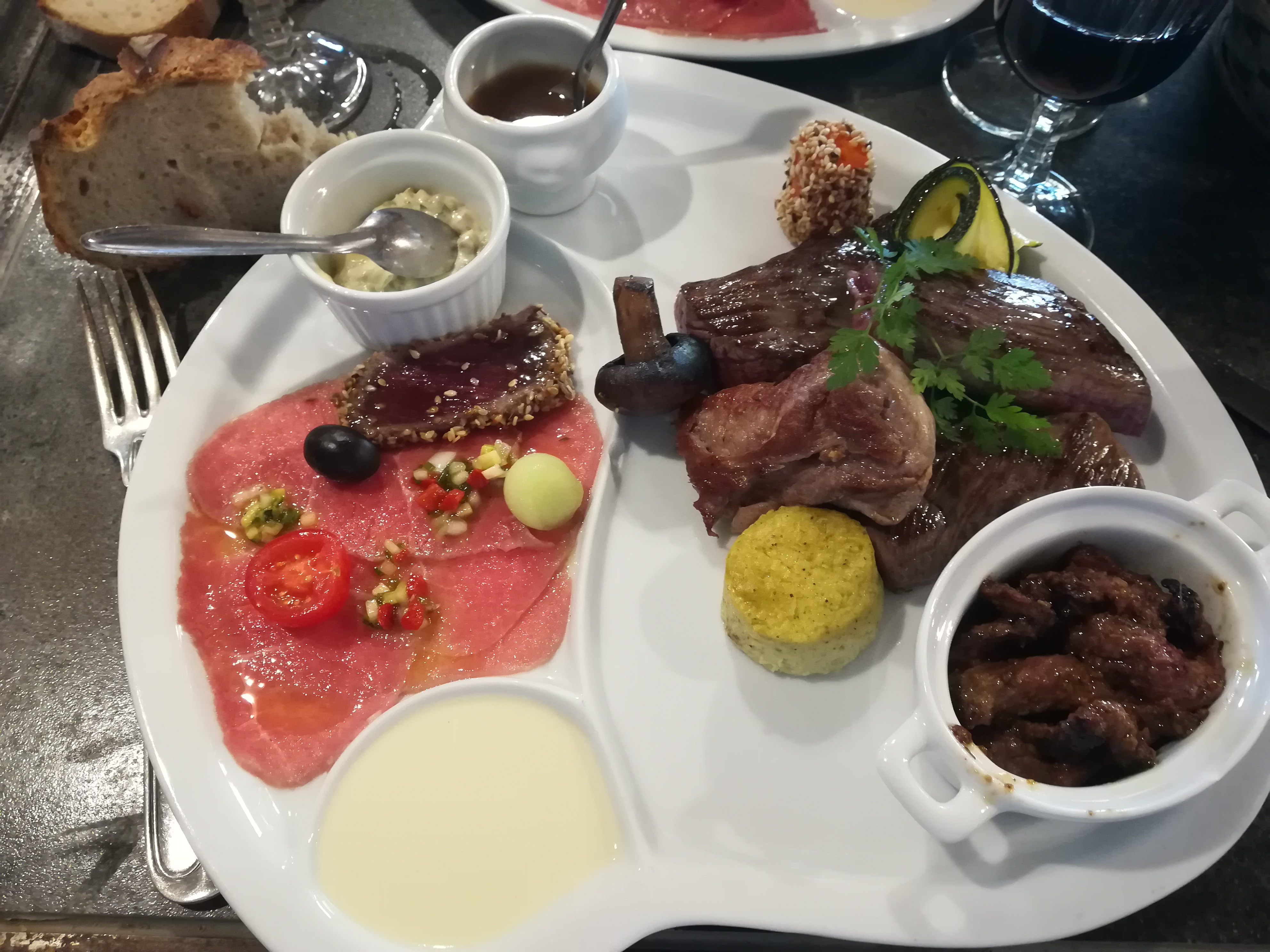 Repas avec menu unique grillades à volonté. Les viandes sont de très bonne qualité, tendre et savoureuse. Le service est convivial et la vue depuis la terrasse magnifique