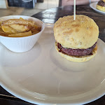 Le lieu est chouette, le concept est super, le service est excellent, la bière locale était top. Maintenant, parlons de la nourriture ... l'entrée (le tataki de carpaccio de boeuf) et le dessert (la tatin) étaient excellents, quoique je ne comprends pas le design extrêmement compliqué, ou le trop plein d'ingrédients différents (dans le tataki). Pourquoi ne pas faire plus simple ? Laisser les ingrédients excellents parler pour eux mêmes ? Pas de faux pas ici parce que les fondamentaux sont maitrisés, mais si ça n'avait pas été le cas j'aurais été plus sévère dans la notation. Parlons du problème : j'ai commandé le coeur de filet, la rolls du boeuf. J'ai eu un (petit) morceau de viande trop cuit et sec, dans une grande assiette, avec une galette de croûte (qui était correcte), une lamelle d'aubergine (heuuuu ... pas très généreux). Les frites étaient excellentes. Le plat principal (le principal argument du restaurant) fut donc très décevant d'ou la note un peu sèche. Mes voisins ont pris une excellente pièce du boucher tout à fait savoureuse, et des burgers appétissants et faits maison qui avaient l'air à un meilleur standard, d'ou mon incompréhension. Au final, un excellent endroit, avec beaucoup de fréquentation (d'ou sans doute une cuisine débordée qui fait parfois des fautes) ou qui envoie des plats qui ne sont pas au standard attendu ...