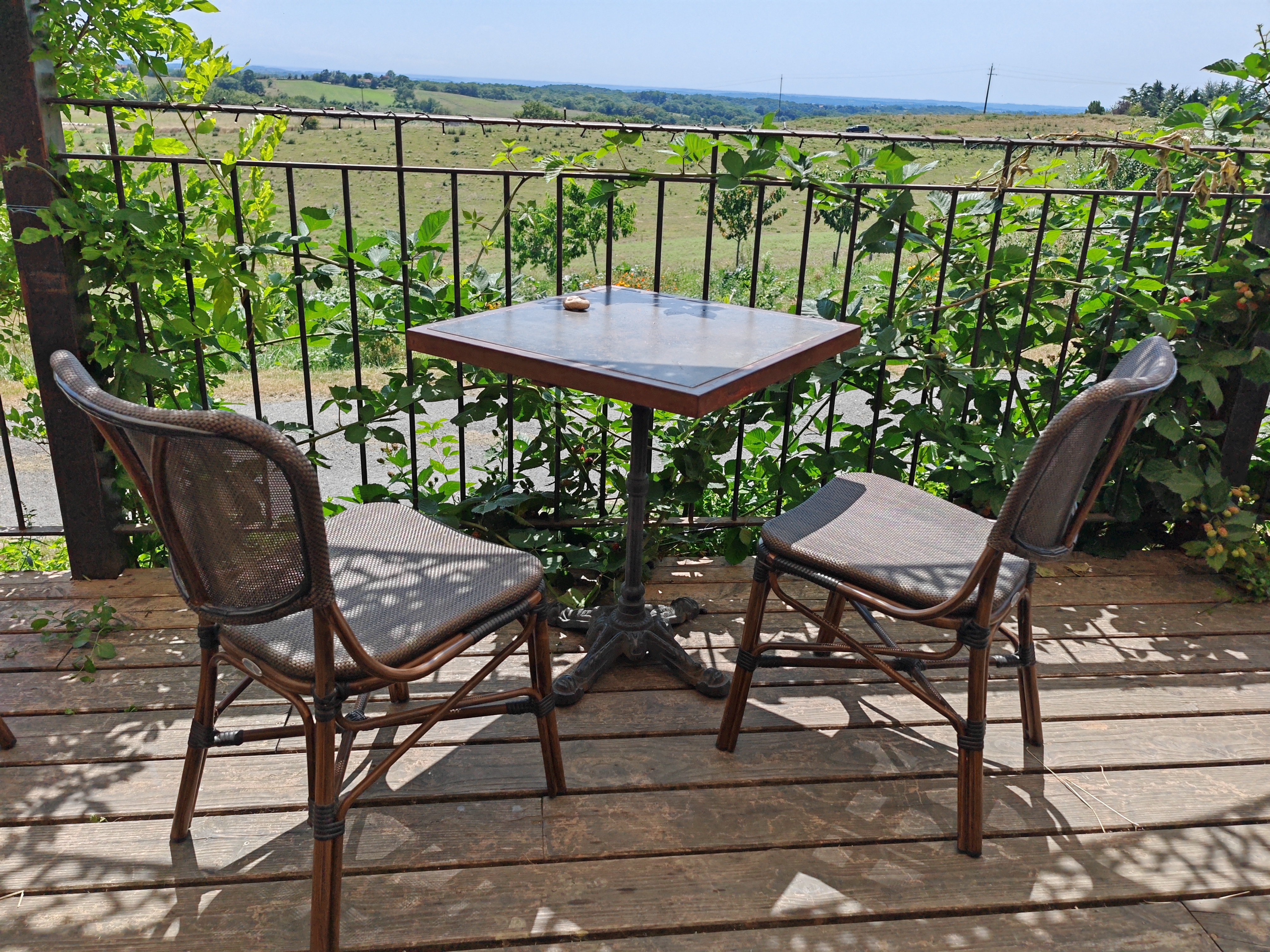 Vue imprenable sur les vallons du Gers avec les Pyrénées en toile de fond. Viande exquise. Service sympathique. Et le tout chez l'éleveur. Une superbe expérience.