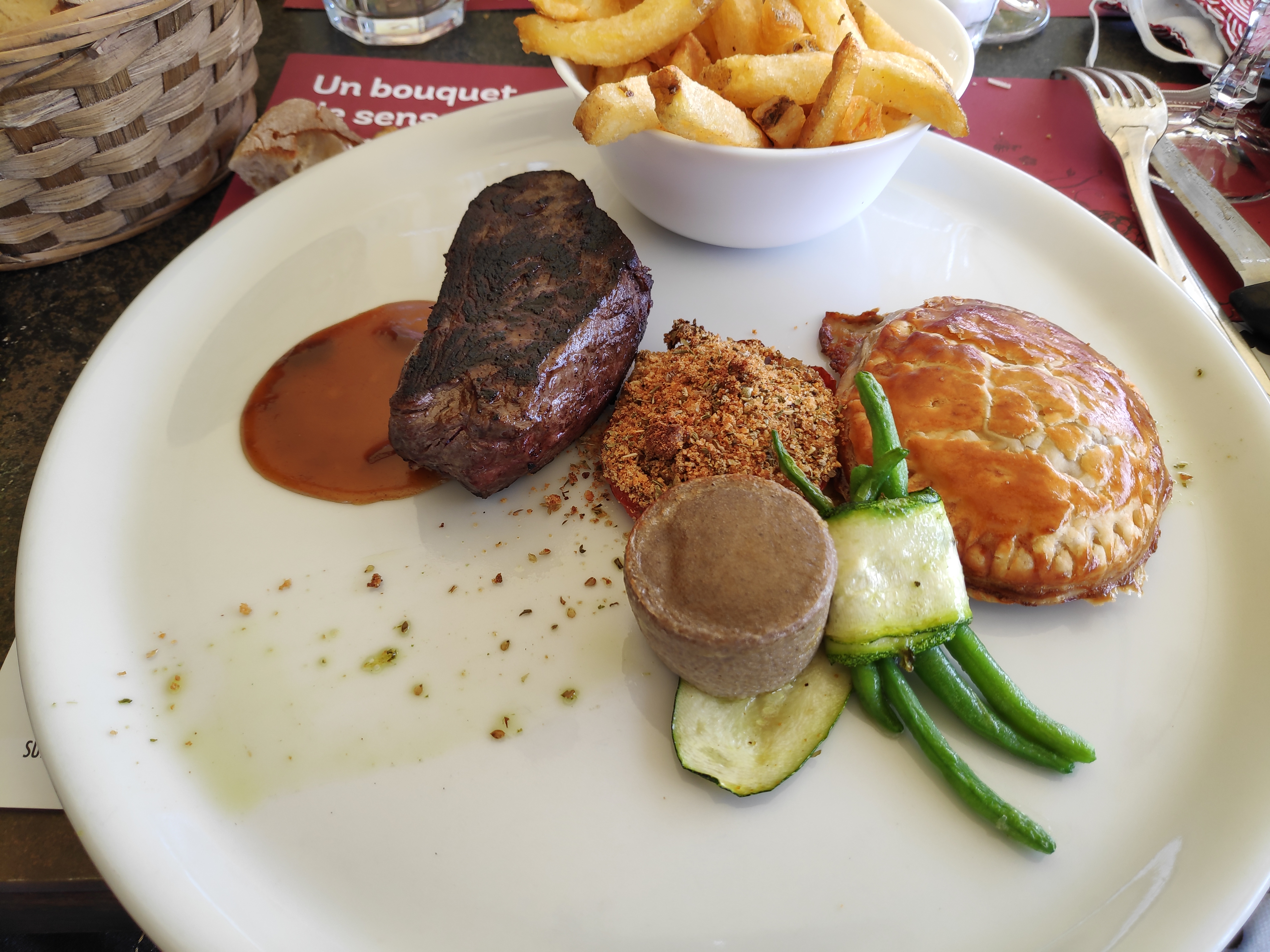 Un très bon accueil et de très belles assiettes mais la viande un peu trop cuite donc c'est bien dommage.