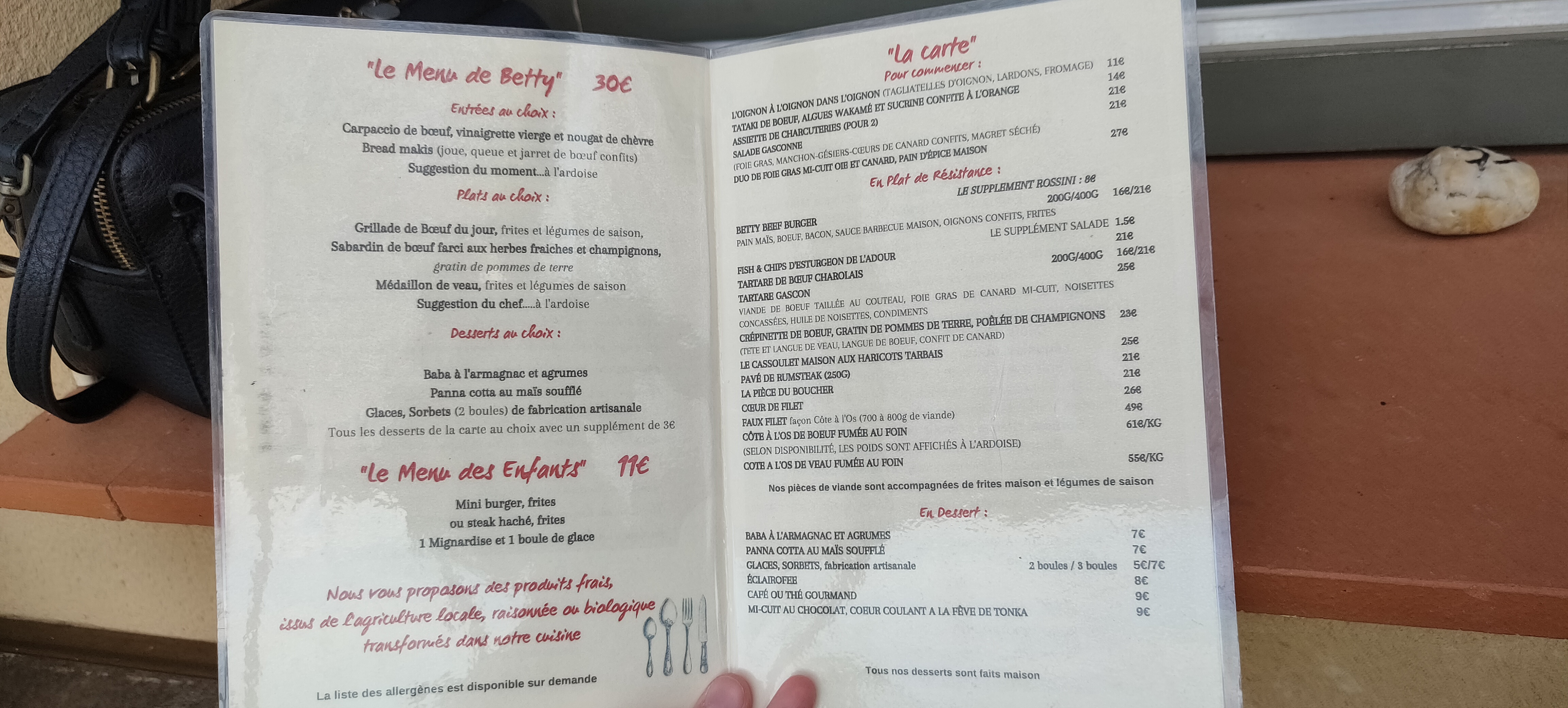 Une très belle adresse avec un cadre magnifique: vue sur le potager, le champ et les vaches. Effet Wahou bucolique garanti. Le concept Éleveur/Restaurateur se ressent dans l'assiette avec des produits d'excellentes qualités. Ajoutez à cela un chef créatif, un personnel au petit soin, la valorisation des produits locaux et des cocktails maison (A l'Armagnac !), Betty Beef devient une adresse incontournable.