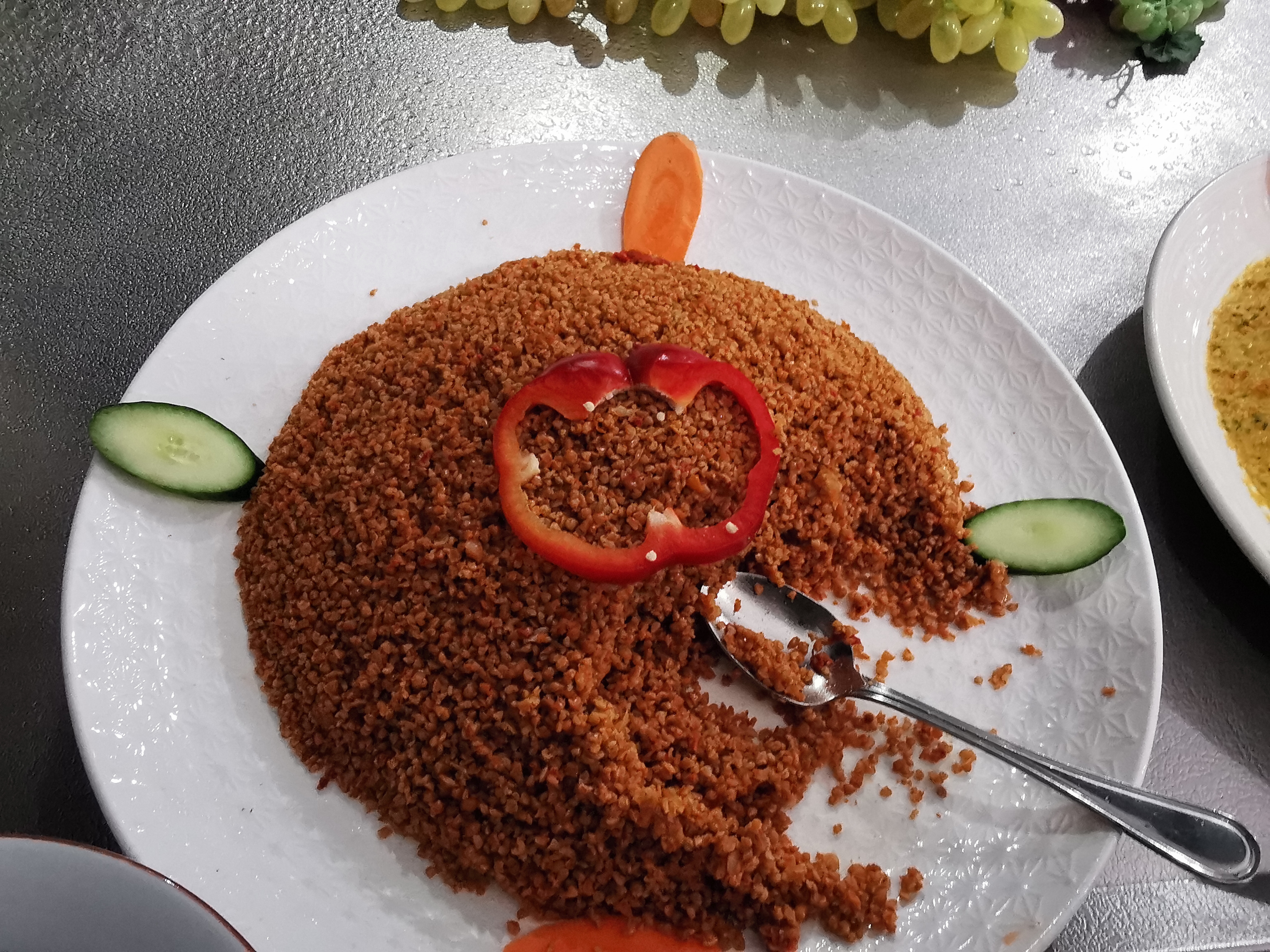 Surpris par la quantité omniprésente de légumes, je m'attendais a plus épicé finalement c'était bien dosé Très bon, j'ai goûté quasiment a tout La purée d'aubergine,sle taboulé Toutes les infos sur le site