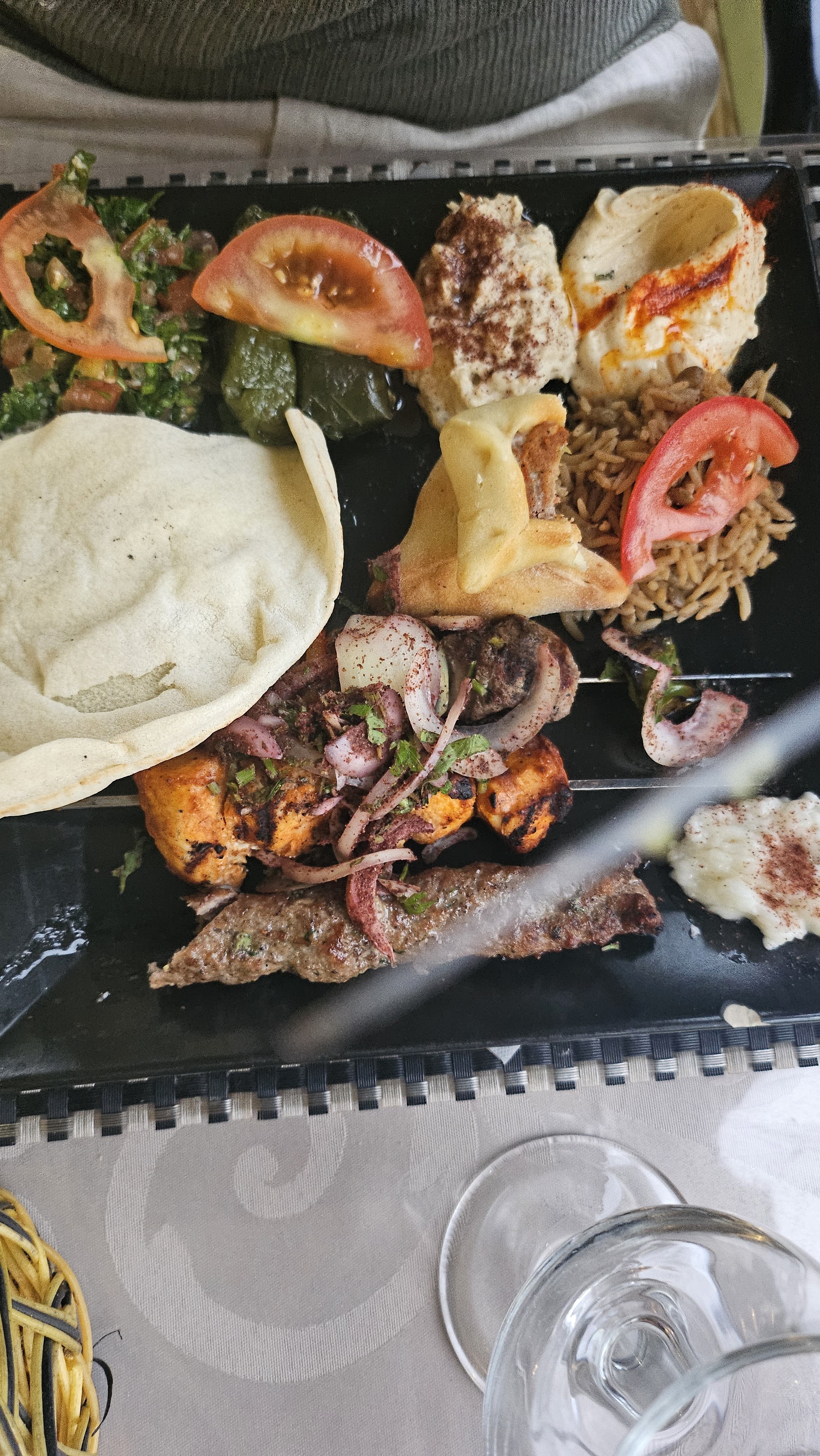 C'était la première fois que j'allais dans ce restaurant, moi qui adore la cuisine libanaise, et bien tout était délicieux. Les mezzés variés étaient très bons! Je recommande 100x ce restaurant. De plus un personnel souriant et accueillant!