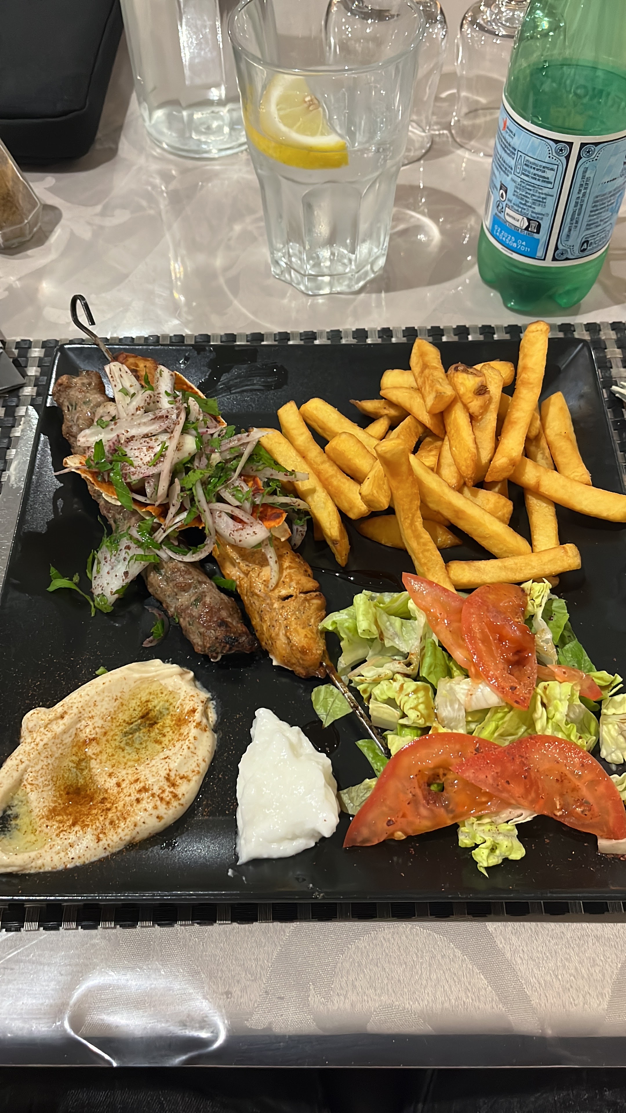 J'ai mangé dans ce restaurant il y a 15 jours avec mon conjoint. Très déçu les plats à volonté pas bon du tout mon conjoint et moi même n'avions même pas fini l'entrée qu'on nous pose le plat. Je suis pas du tout difficile niveau mangé surtout que j'ai entendu que du bien sur les plats libanais mais là je suis vraiment déçu. Pour deux personnes nous avions eu un long plat avec 2 brochettes de kefta un peu de salade et quelques frites. J'aurai préféré avoir une assiette comme dans des vrais restaurants et avoir la quantité et la qualité avec. Pour ce qu'on a mangé j'ai trouvé très cher je recommande pas de restaurant.