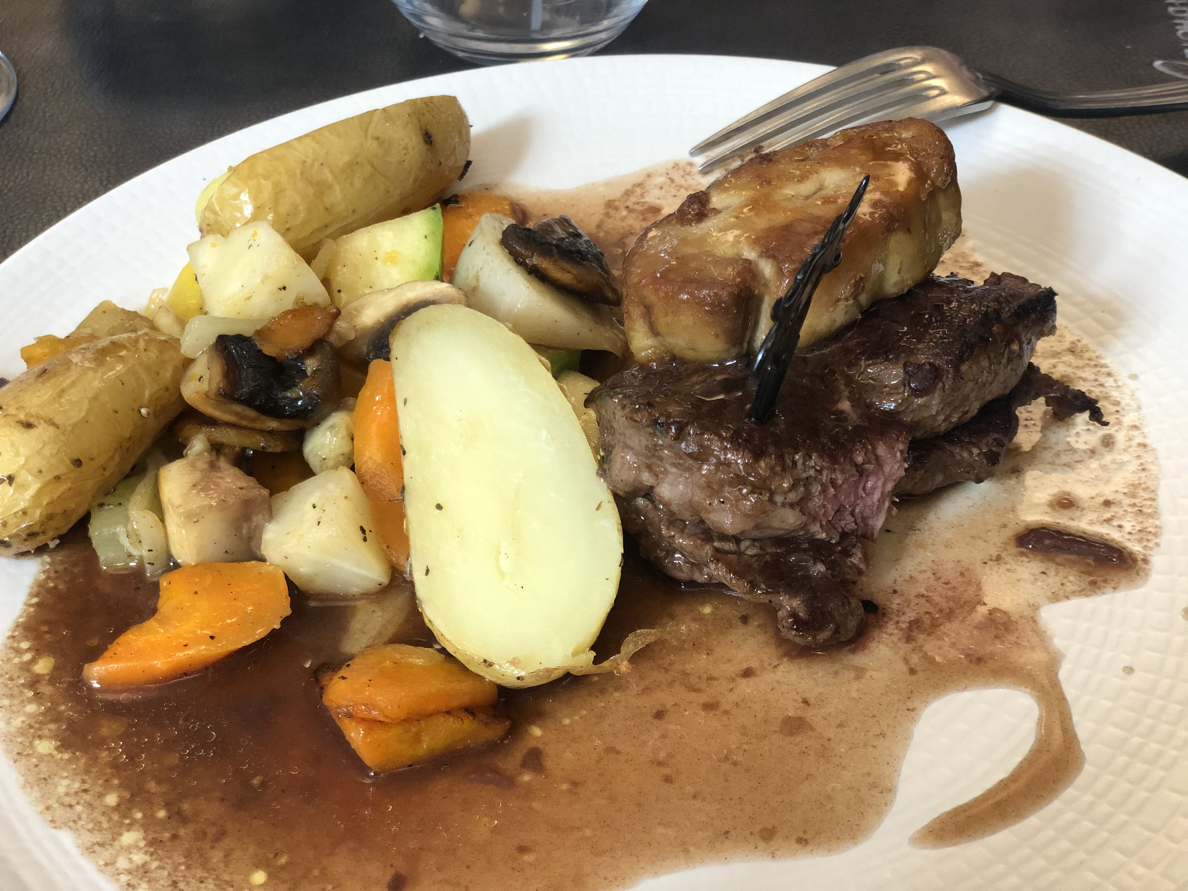 Le foie de veau pas terrible comme de bouillie aucune consistance pièce de boeuf nerveuse service pas synchro les glaces servi sans couverts Donc profiteroles fondues Dommage car nous étions habitué à beaucoup mieux De plus la patronne était au courant que le foie servi n'était pas top Dommage pour cet établissement
