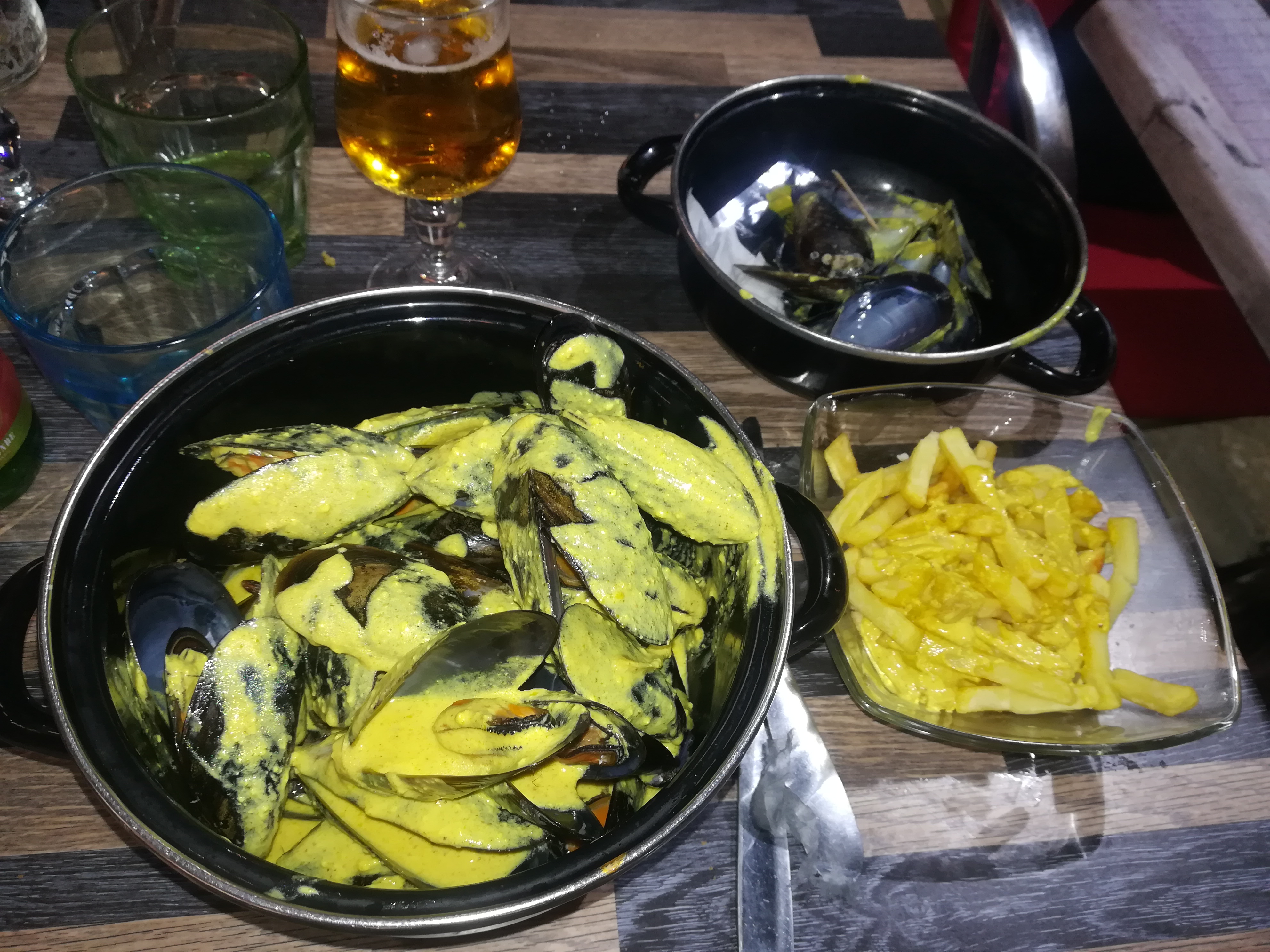 Nous sommes venue en famille le soir, la nourriture est de basse qualité. Je n’ai presque rien mangé… les moules étaient bonnes mais les sauces n’avaient pas vraiment le goût du curry ou du bleu. le steak de requin était tendre mais n’avait aucun goût tandis que les desserts à base de crème étaient trop figé et donc compact.