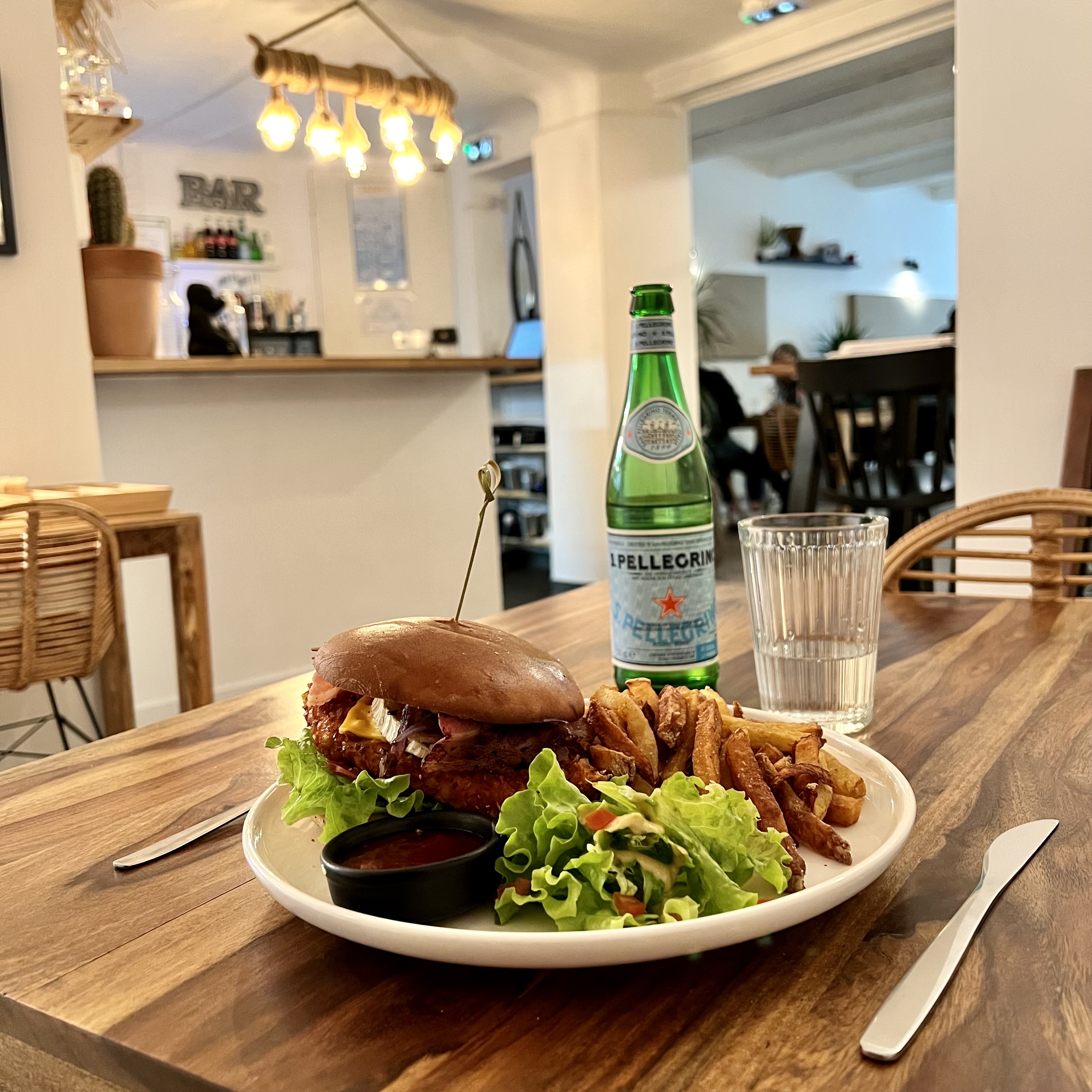 Très bons burgers qui mettent en valeur le fait maison et les produits locaux. Des gens charmants et une déco très agréable. Je recommande ce lieu!