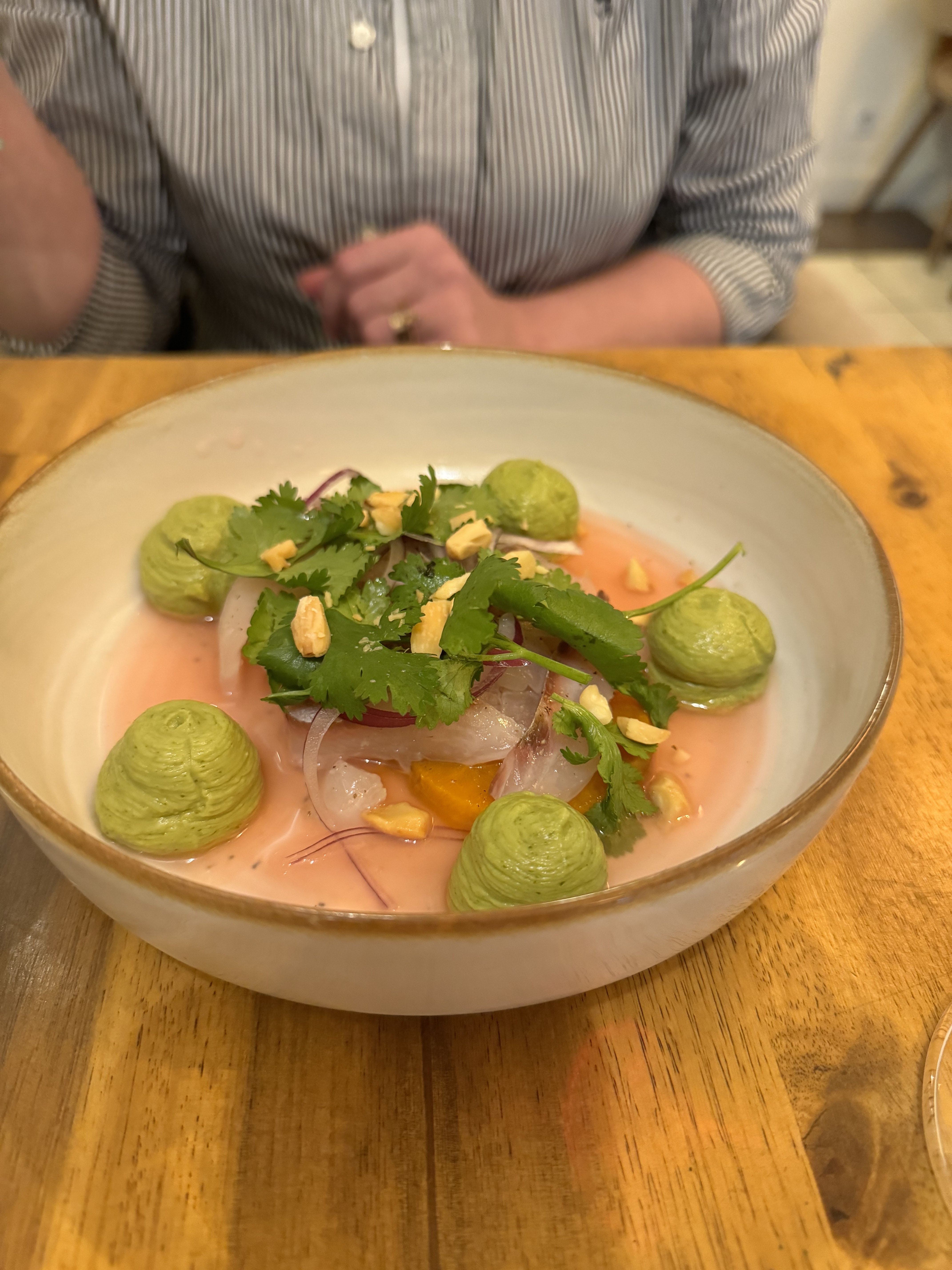 Superbe moment. Des entrées excellentes : ceviche, croquette de jambon ibérique ou poule grillé. Une selle d’agneau à tomber par terre, de la lotte en plat. Le chef officie seul devant vous. Tout est précis, méticuleux. L’accueil est agréable Nous reviendrons avec plaisir