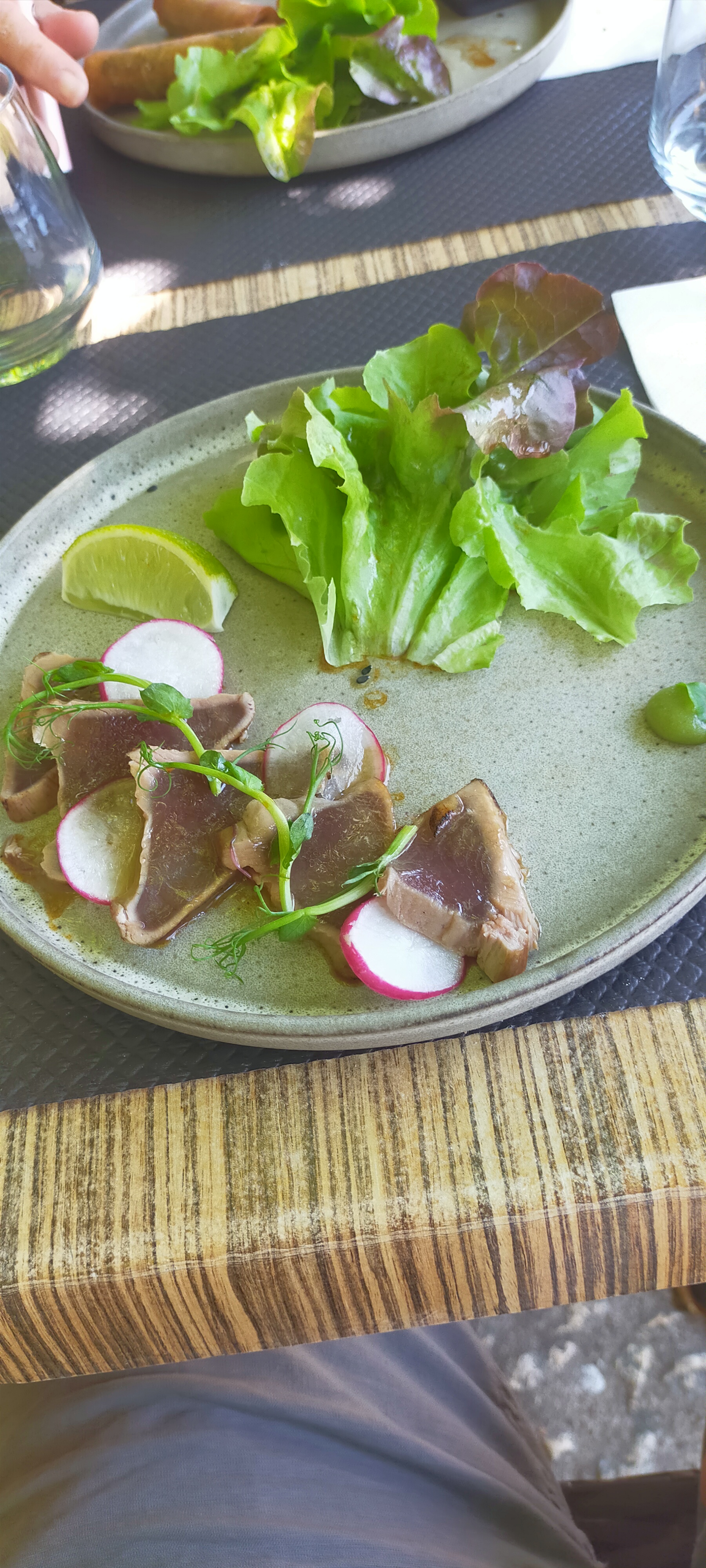 Un déjeuner de 3 plats d'un excellent rapport qualité-prix, un joli coin salon à l'extérieur sous la glycine, nous reviendrons certainement lors de notre prochain séjour dans la région.