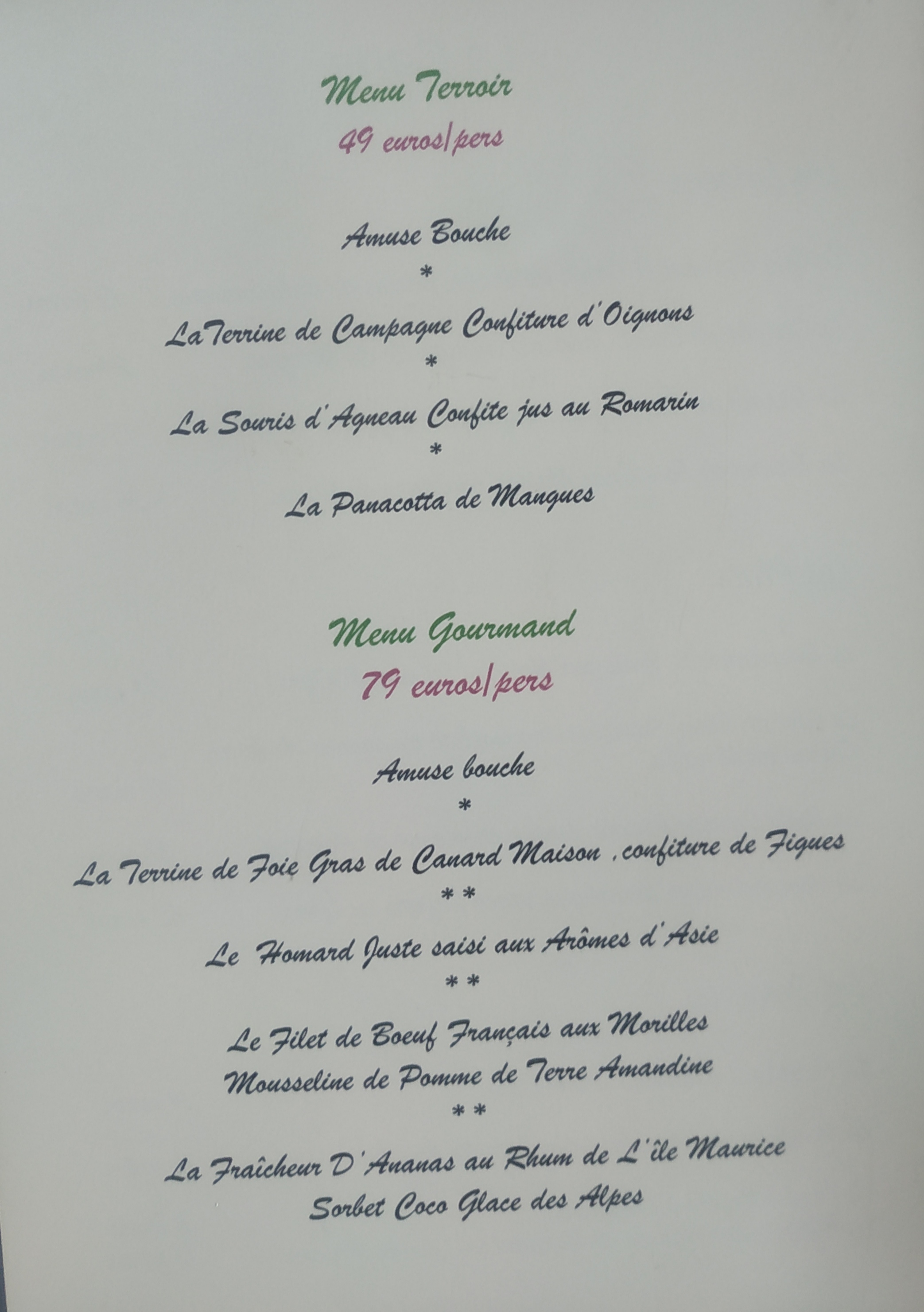 Excellent menu 3 plats avec vins accordés. Très bon accueil en resumé une très bonne soirée