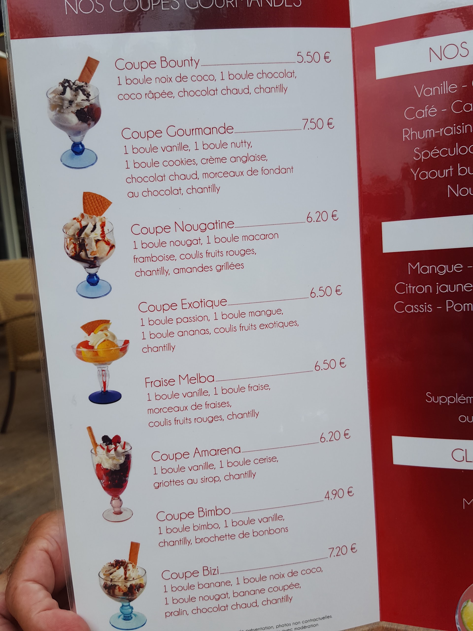 Personnel très sympathique, le granité au cola, les glaces et leur expressos sont très bons ! Nous avons été bien accueillis, dans le respect des règles sanitaires (masque, gel). On nous a également proposé gratuitement de l'eau pour nous ainsi que pour notre chien, qui a pu rester avec nous sans soucis. Le service était nickel, rien à redire !