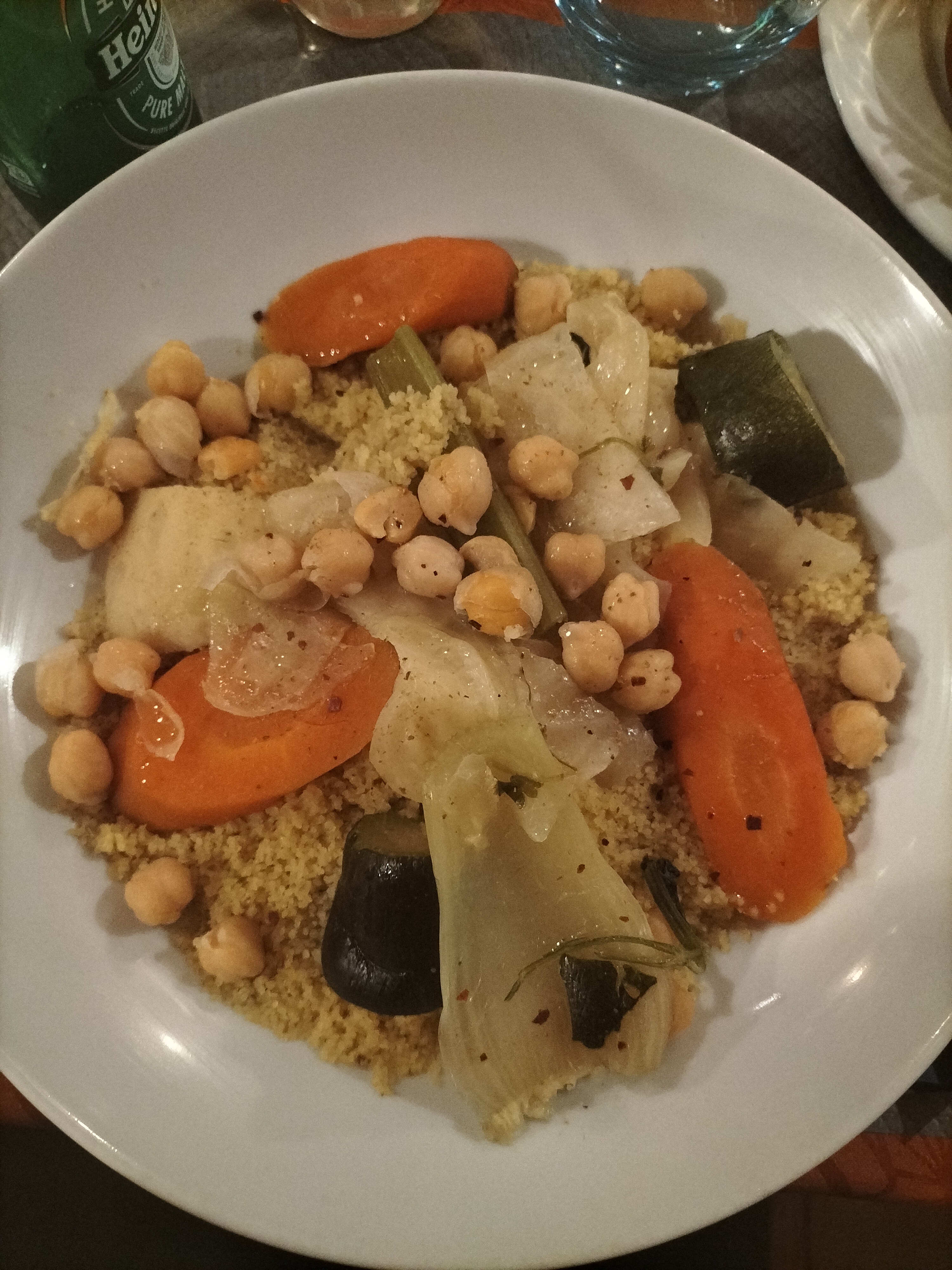 Aucun doutes sur la fraîcheur des produits mais tout manque cruellement de saveurs... Pas du tout de sauce dans le couscous, pas du tout d'épices ni d'assaisonnements, légumes cuits à l'eau qui n'ont pas de goûts... On dirait du couscous allégé, très très déçus...
