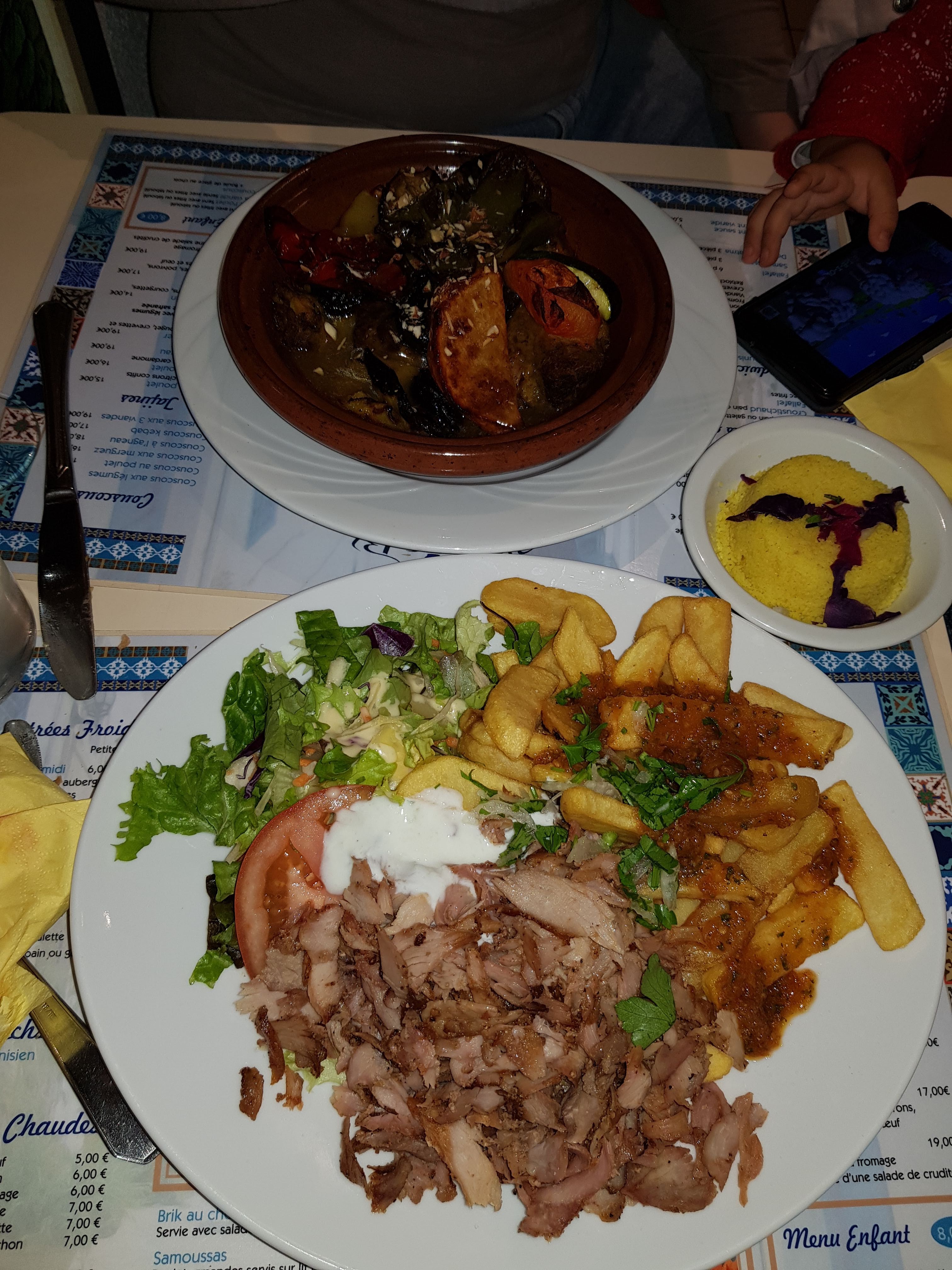 Nous avons passé une bonne soirée. Nous avons bien mangé, copieux avec un délicieux thé à la menthe. Le tout dans une ambiance convivial et joyeuses. Je recommande ce restaurant.
