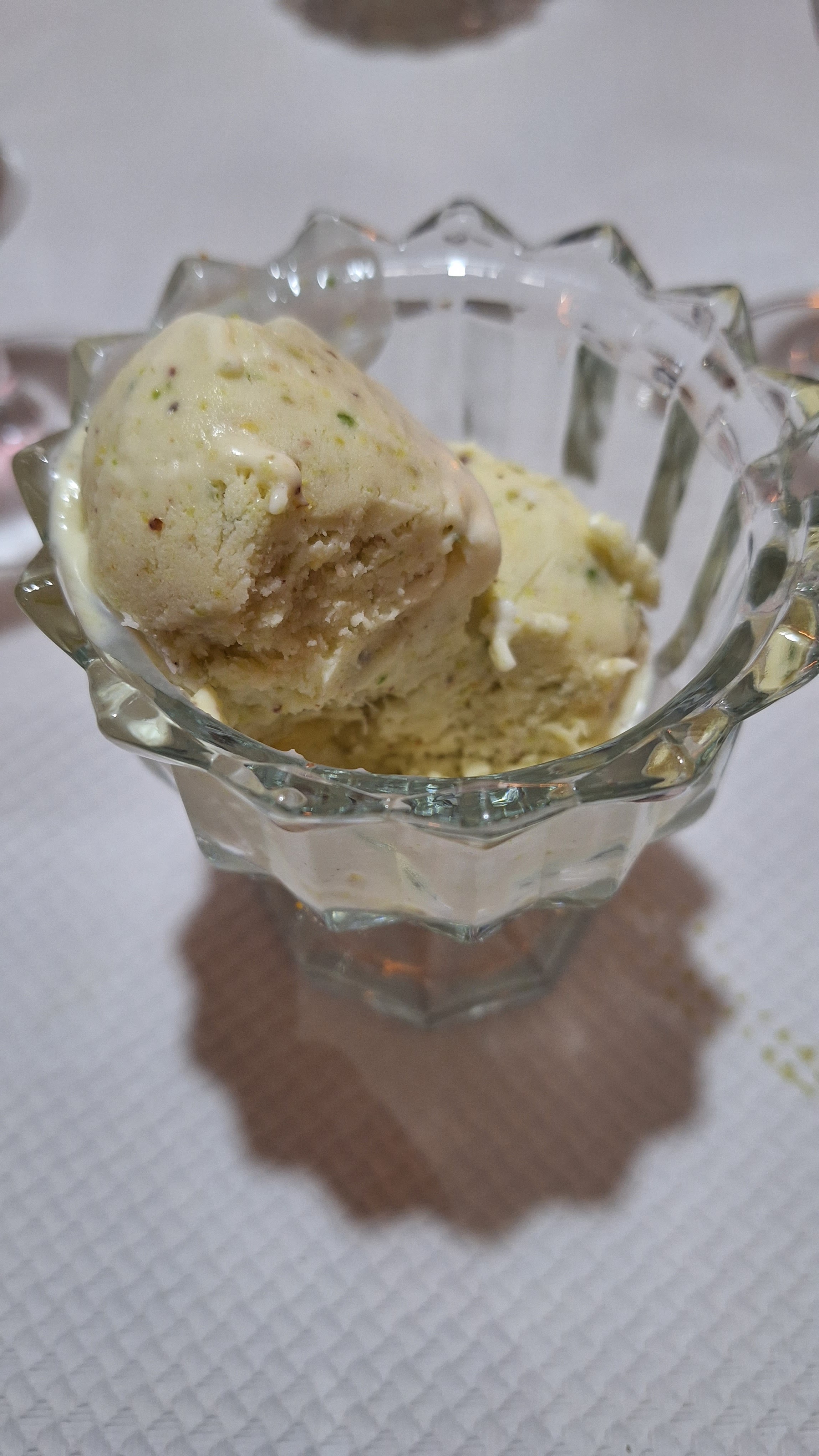 Ravie ! Un très bon plat et j’ai adoré ma glace pistache-amande-cardamone.