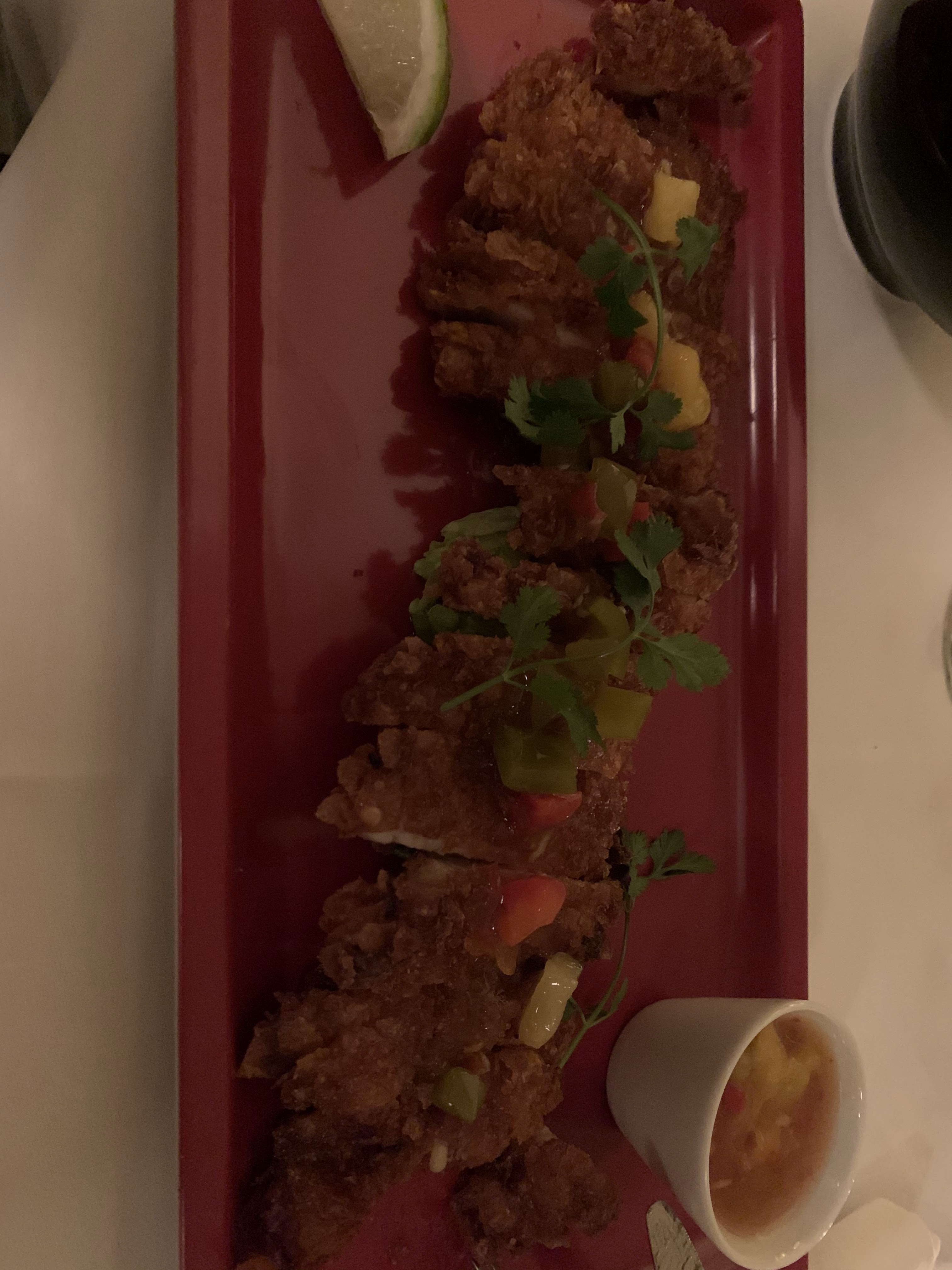 Vraiment délicieux. Nous avons découvert ce restaurant et nous l’avons adoré . Les prix sont assez élevés mais en valent le coup . Le cadre est vraiment bien et les plats excellents. Le service est également de qualité et les serveurs d’une bonne aide . Cocktail vraiment bon, le poulet croustillant, une merveille ! Seul le dessert n’était pas aussi délicieux mais nous reviendrons!