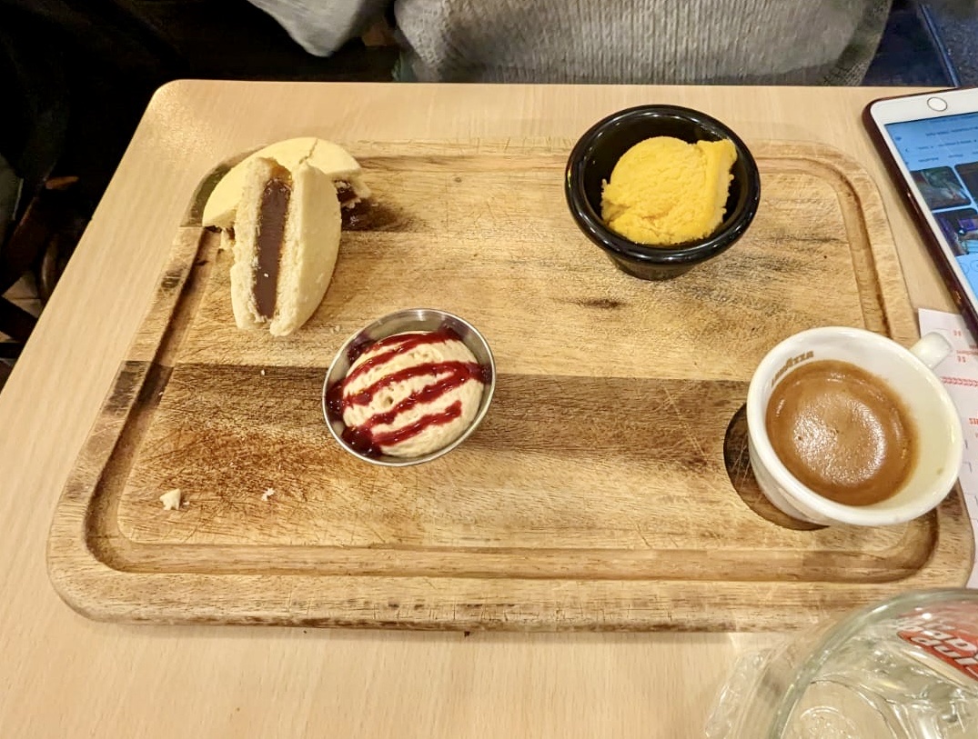 Voyager en Argentine tout restant à Metz, c’est possible ! Empanadas, nachos, dulce de leche sont de mise dans ce restaurant, donc laissez-vous embarquer dans ce voyage gustatif. Les empanadas sont bonnes, elles ont même leur numéro moulé dessus pour que vous sachiez quelle empanada est tel modèle. Une fiche vous est remise quand vous vous asseyez pour faciliter la prise de commande, et au moins vous gardez les modèles d’empanadas et leur contenu à disposition lors de la dégustation ! Nous avions également pris les nachos mais ils ne nous ont pas convaincus, pas assez de cheddar, on a dû finir de manger les nachos sans sauce à la cuillère 🥲 Bon desserts également, je recommande le café gourmand pour avoir un aperçu de plusieurs des desserts proposés à la carte. Attention tout de même car la note monte vite : 55€ pour 2 avec boissons, empanadas, accompagnements et desserts.