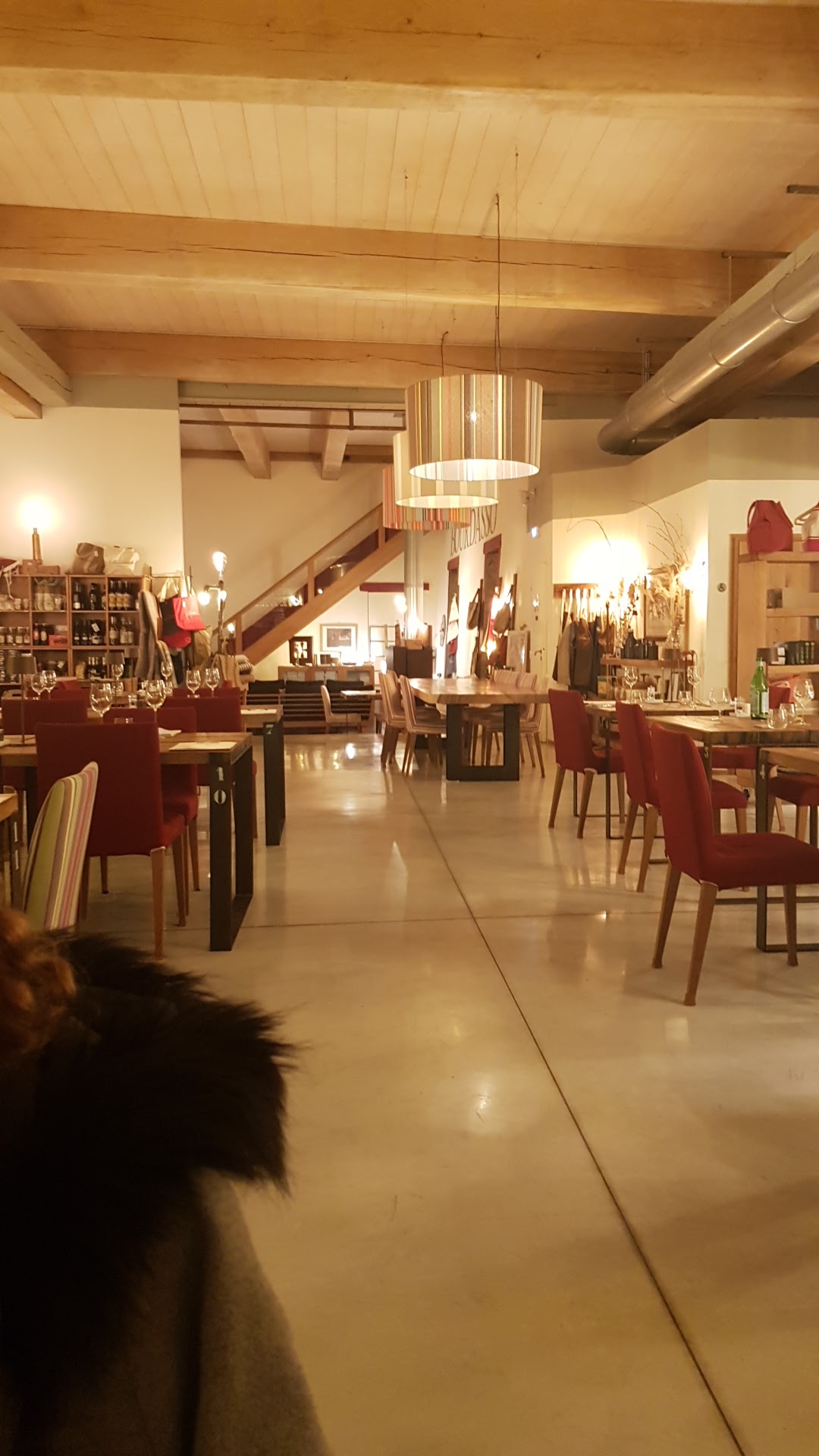 1/ L'environnement : on se retrouve dans.un vieux corps de ferme typique. 2/ L'ambiance : c'est un restaurant très atypique : salle sur 2 niveaux, mélangeant style champêtre et industriel. Un feu de cheminée diffuse une chaleur très agréable. 3/ Le personnel très accueillant, souriant, à l'écoute et très serviable. 4/ Les plats limités mais gages de fraîcheur : des aliments et surtout très goûteux.