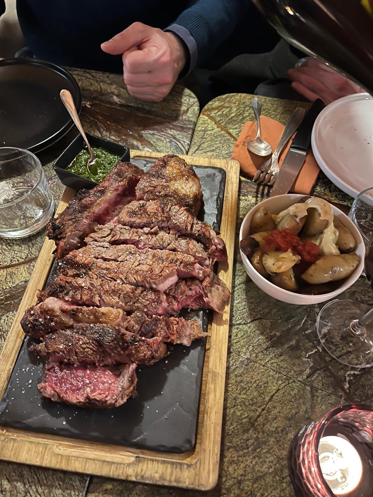 Équipe au petit soin pour ses clients Lieu épuré, belle carte des vins ! Nous avons pris une entrecôte à deux sans pouvoir la finir.... (il y avait quand même un gros mangeur ;)) la cuisson demandée était parfaite. Merci