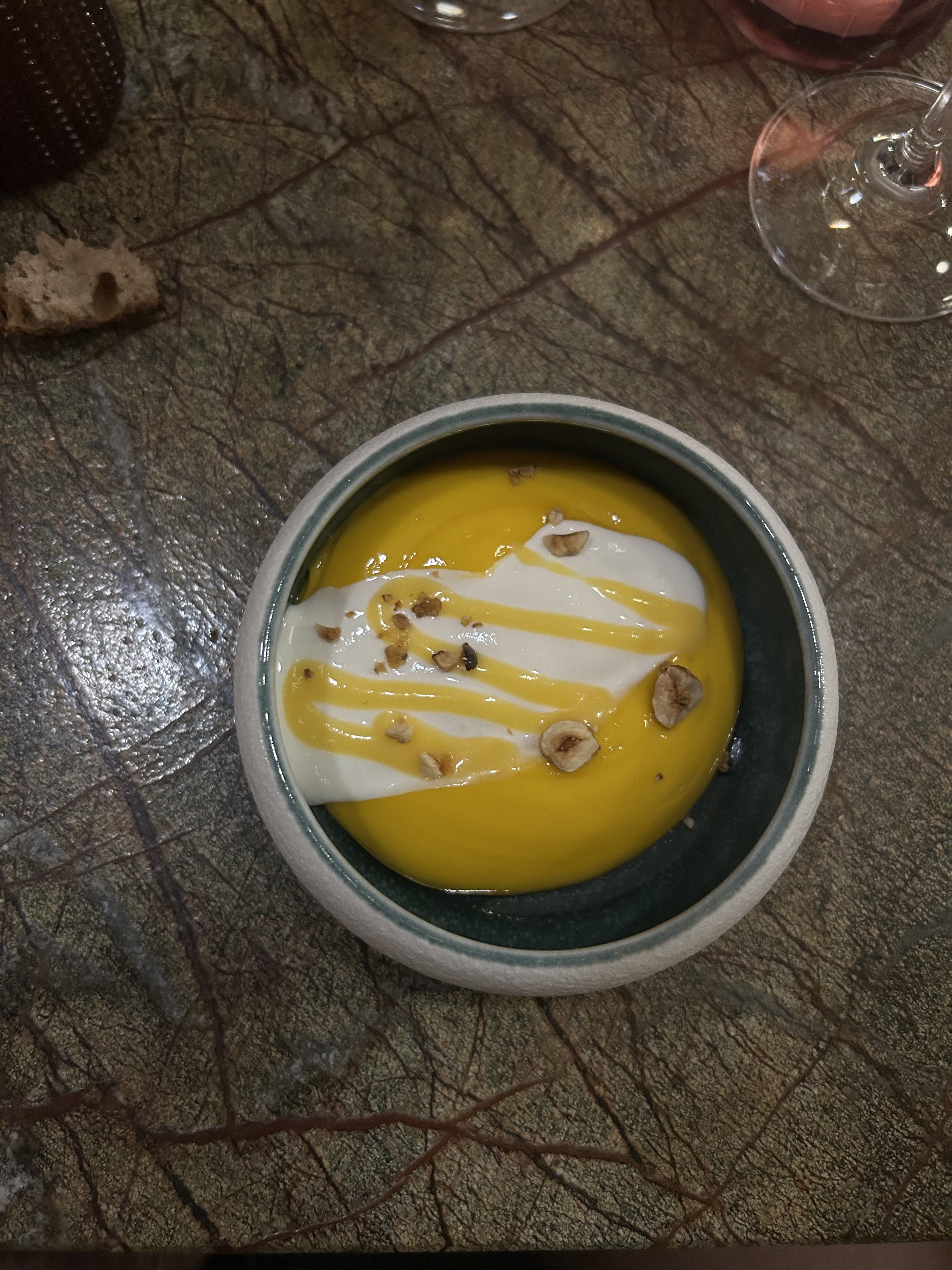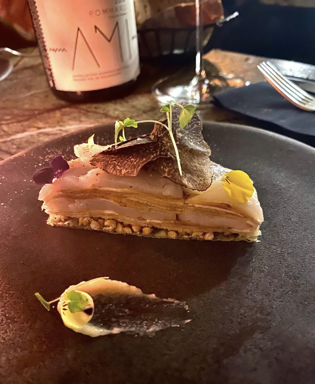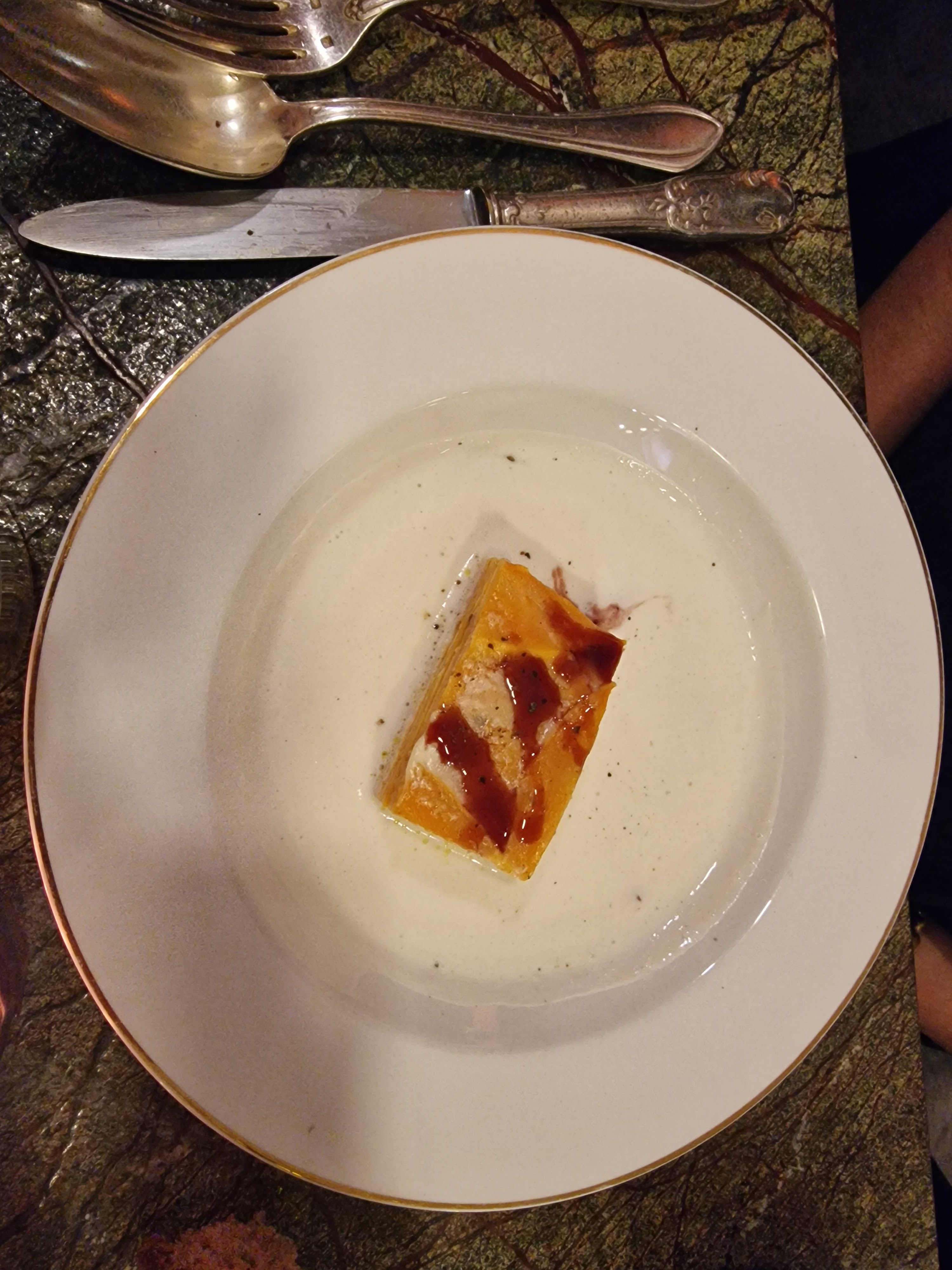 Une délicieuse soirée avec une succession de 4 plats très savoureux (mille-feuilles patate douce coings... une tuerie) puis un dessert onctueux. De bons vins, de bons copains, on était bien ! Serveurs très sympas aussi.