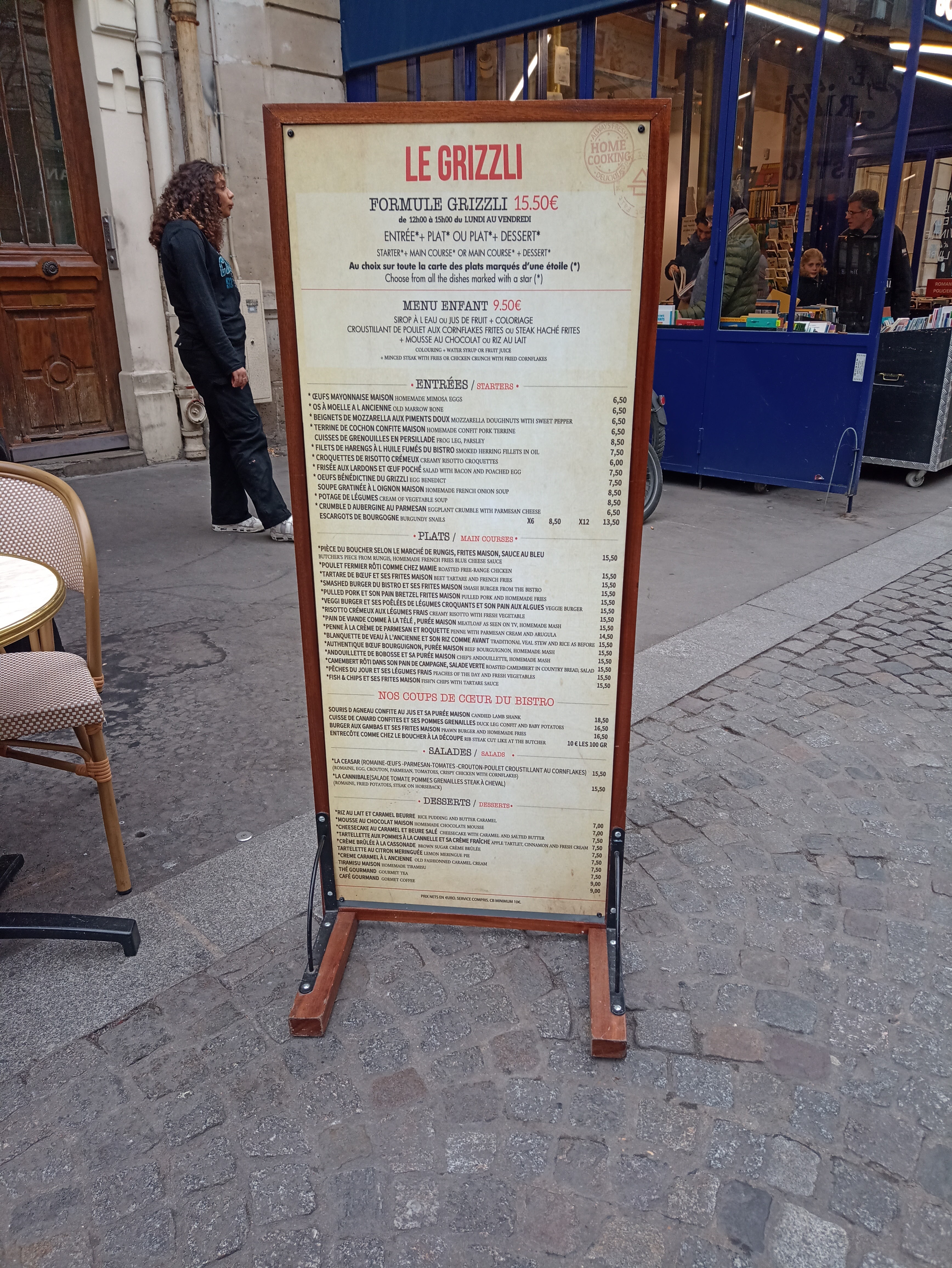 Nous avons eu le plaisir de passer notre réveillon dans cet établissement charmant (.... que nous fréquentons depuis 16 ans avec mon mari, c'est effectivement le lieu ou nous nous sommes déclarés). Un jeune couple a repris l'affaire. ils sont charmants, conviviaux, agréables. La cuisine est intéressante, les ingrédients sont de belle qualité? Bref, n'hésitez plus, le Grizzli est un super restaurant pour passer un moment agréable dans le Centre de Paris.
