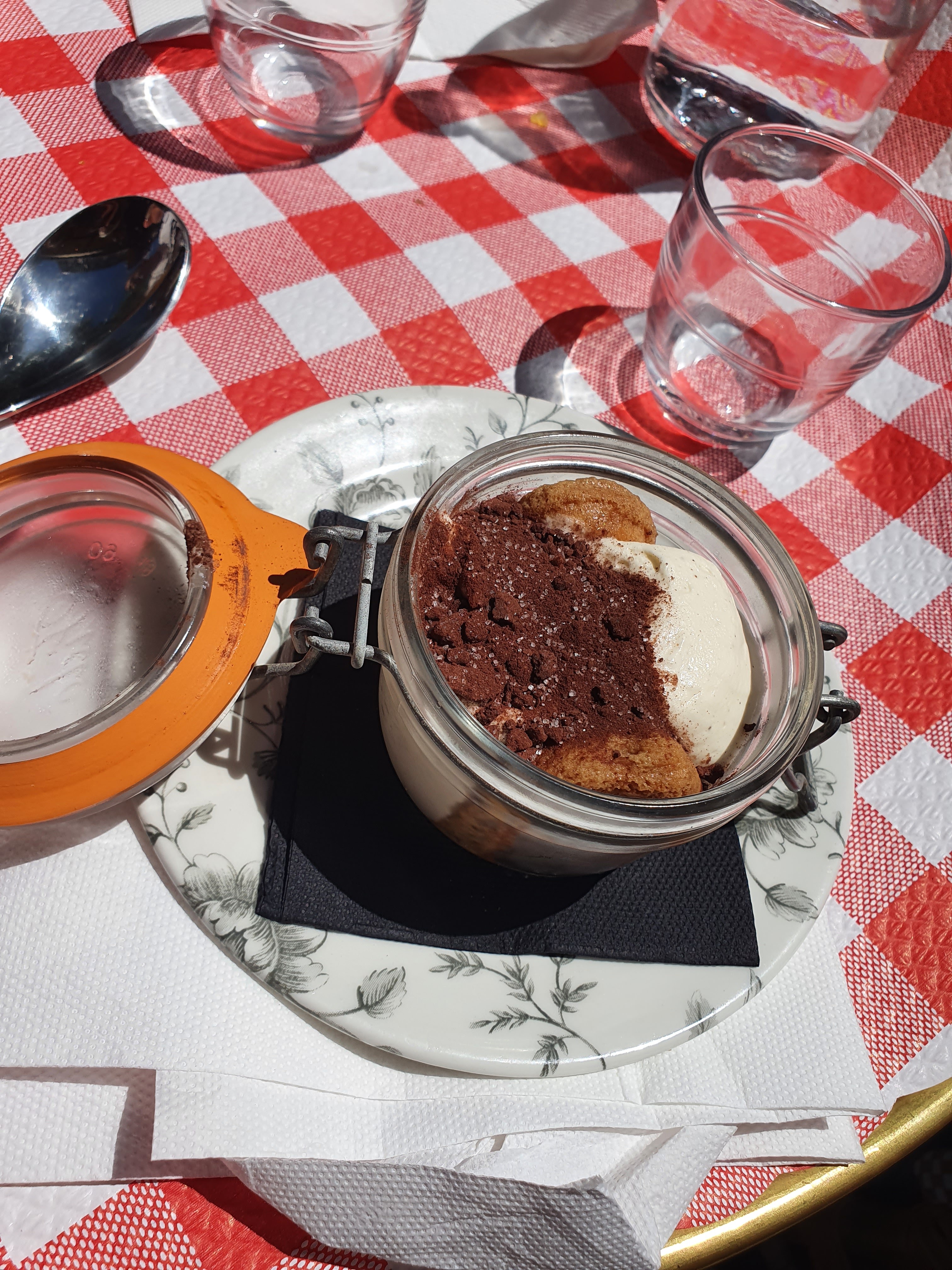 Je suis venue déjeuner hier samedi 6 avril. Super accueil, c était parfait en terrasse avec le temps exceptionnellement chaud. Capriccio de bœuf + frite très bon Le tiramisu bien frais et délicieux. Merci !!🥰