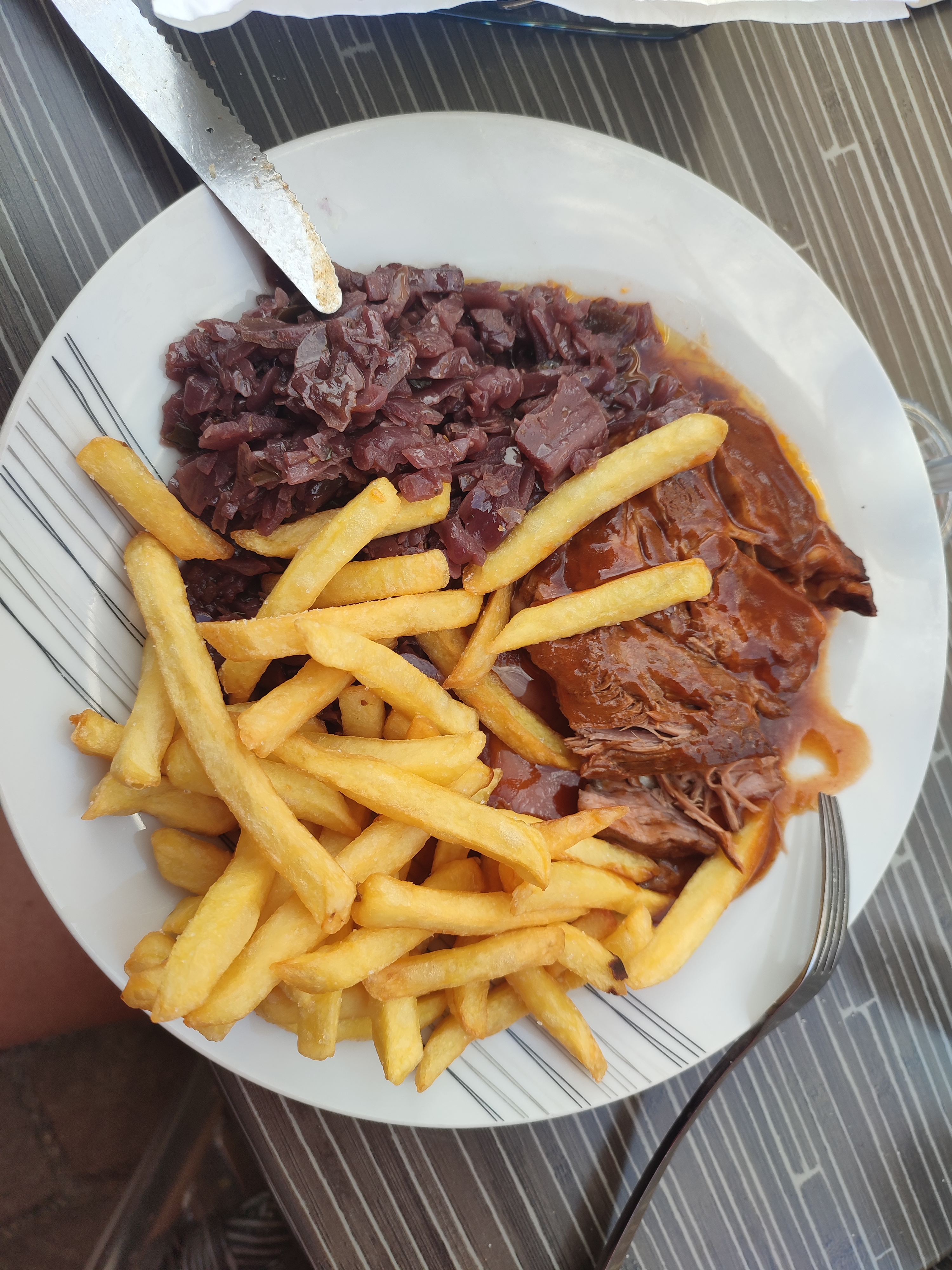 L'etablissement ne paye pas de mine mais menu à prix correct, service rapide et très très bon On reviendra :-)
