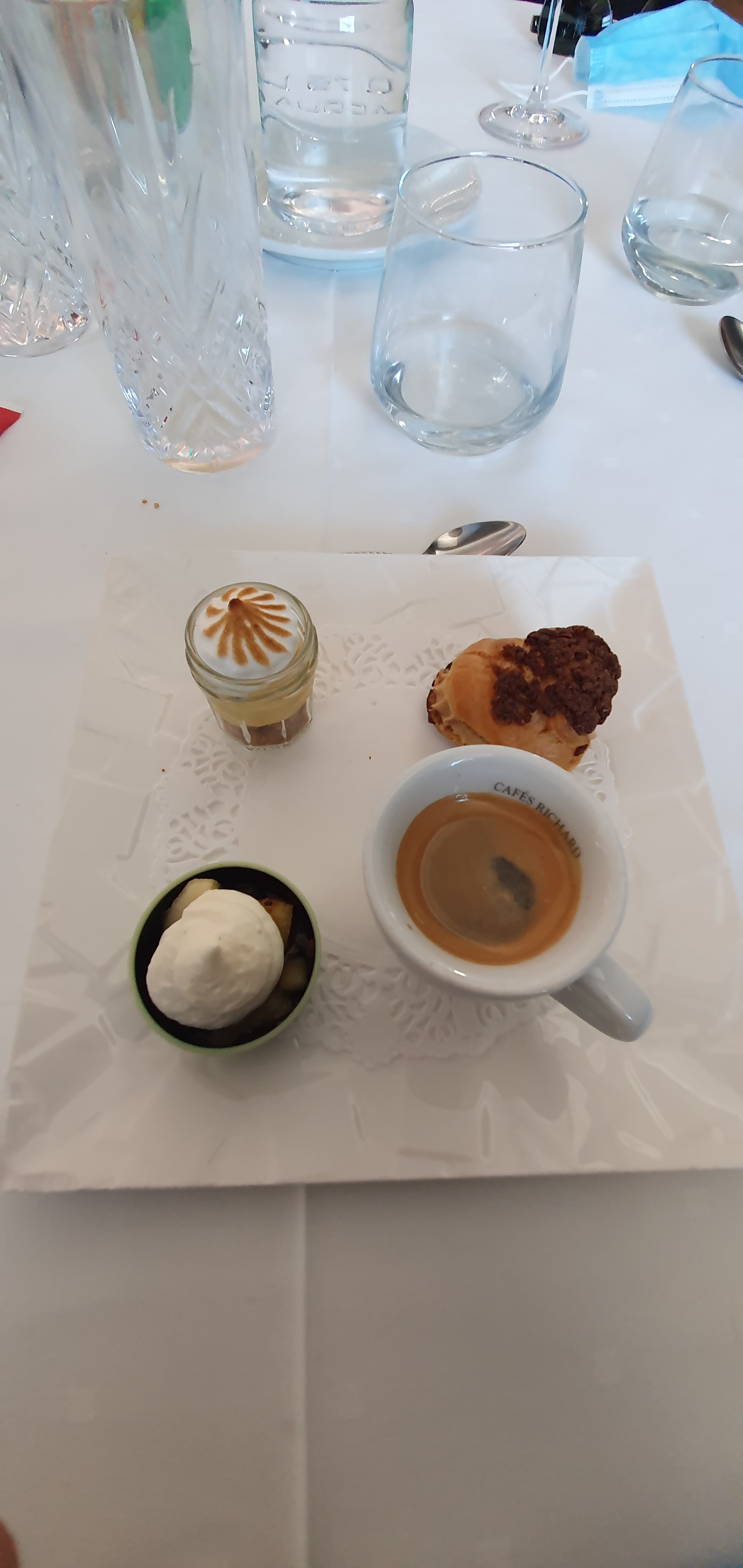 Nous avons oublié de photographier le dessert ; trop pressés de goûter.