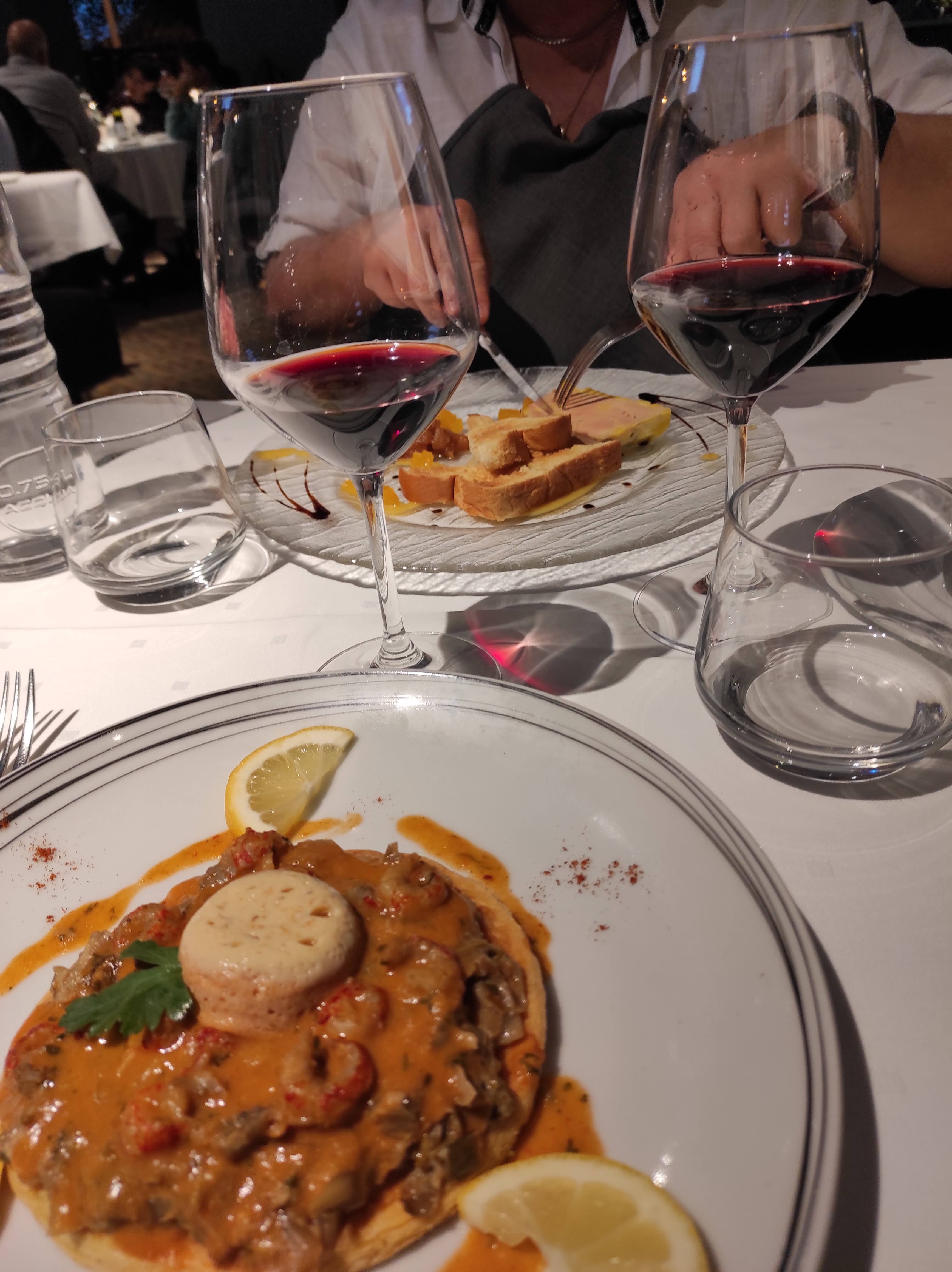 Les apéritifs servis en même temps que l’entrée. Bouteille de vin commandée,reçu à table au bout du 3 eme aller-retour du serveur car il ne ramenait jamais la bonne bouteille de vin !! Le cadre et la décoration sont très belle,mais l’habit ne fait pas le moine..