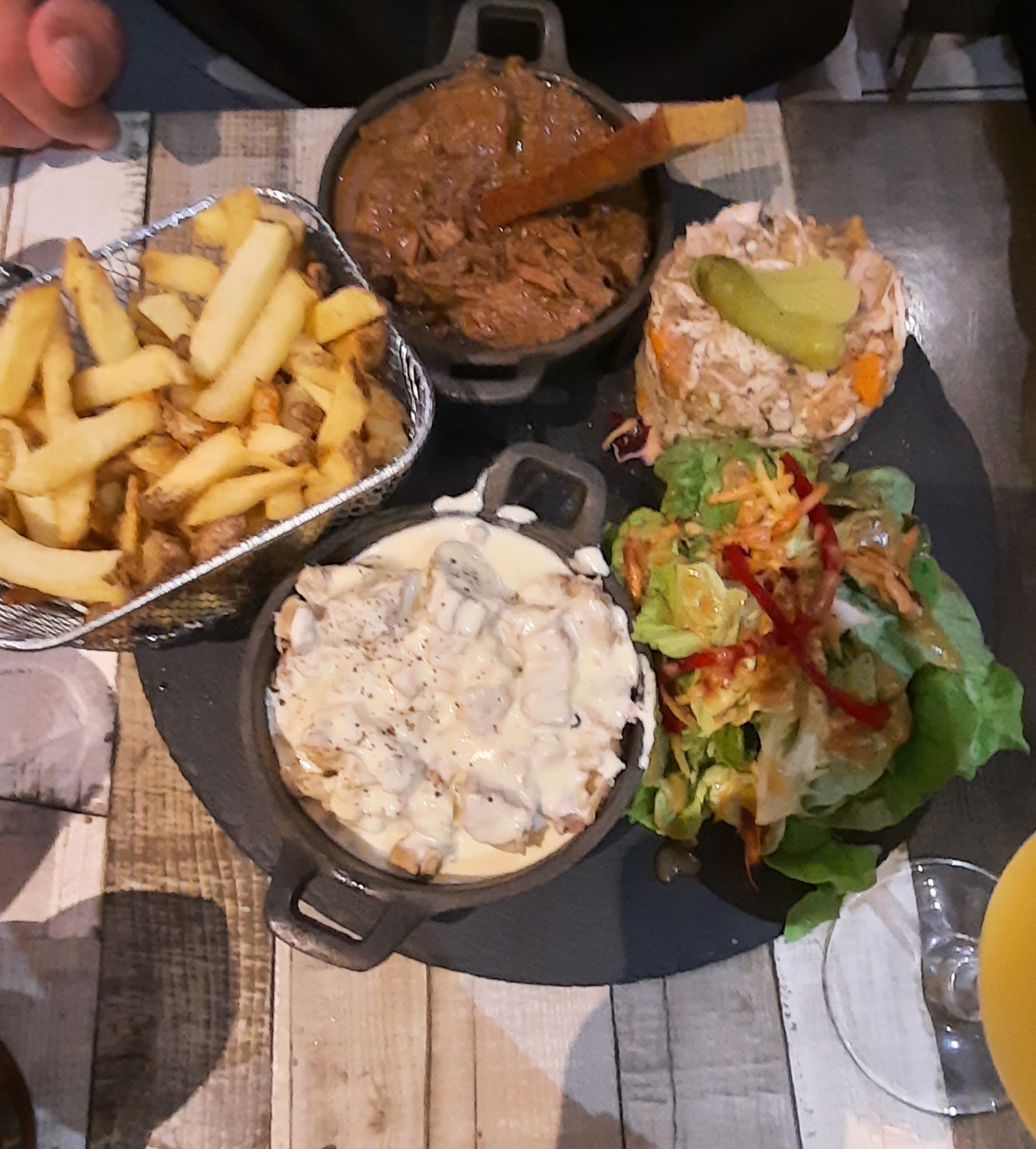 Nous y avons mangé avec notre famille le 24/02 (table 1 et 2), tout était parfait, tout était très bon, des plats typiquement de la région avec des frites maison. La bière est aussi très bonne et brassée sur place. A refaire !
